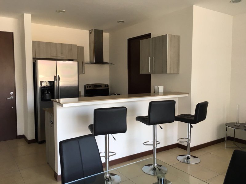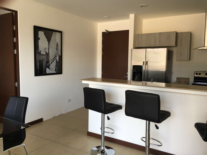 For SALE or RENT, exclusive contemporary apartment in Distrito 4, San Rafael de Escazú. It consists of a bedroom with walk-in closet, a bathroom, Euromobilia kitchen, balcony which offers beautiful courtyard views. A condo with lots of natural light, sound proof glass windows, perfect distribution for entertaining. A residential area that offers the finest finishes in the Lobby and social areas, two elevators, a clubhouse, fitness center, swimming pools; Just a few steps away from super markets, restaurants, farmacy, coffeshops, etc...; and easy access to route 27. You will find elegance, distinction and comfort in one place... make an appointment now!!!