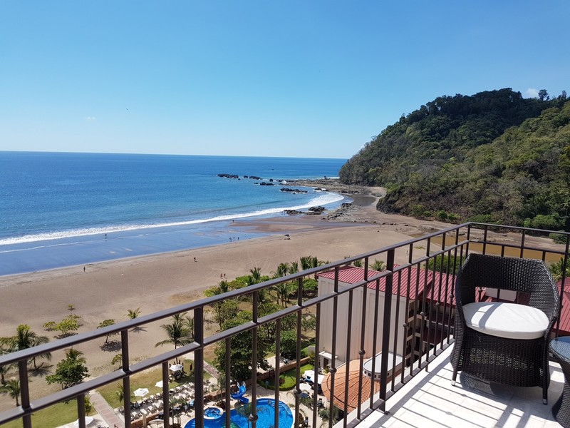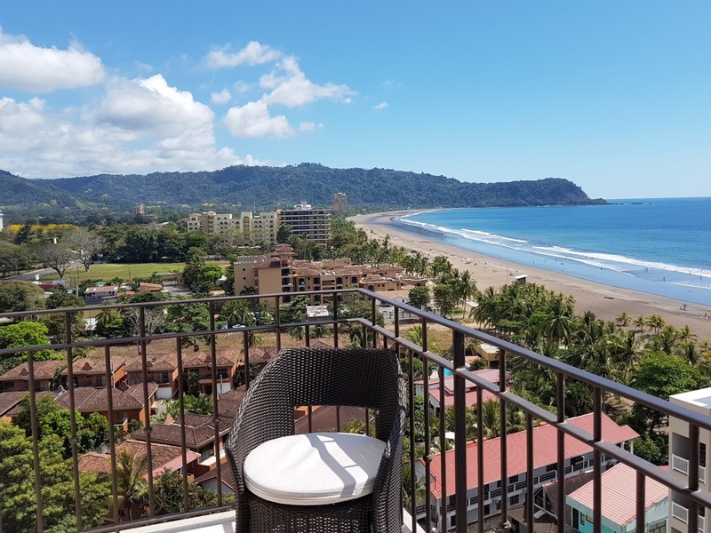Welcome to your our exclusive ocean front hotel suite. The moment you walk in the door you'll be drawn to the navy blue Pacific Ocean. There's a feeling of openness right from the fully equipped kitchen with it's granite counter-tops, all way into the spacious and beautifully decorated living room, which leads into the balcony. You can gaze at the five-star pool and Jacó's beach from side to side all the way to the mountains at the end.
