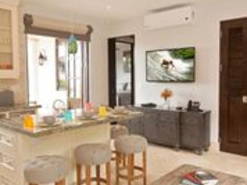 30 Avenida la Antigua is a very spacious 1 bedroom at with an amazing view of town and a peek of an ocean view. It is one of only two Flats with direct access to the outdoor kitchen and private garden without leaving the building. The living room opens up onto a covered outdoor living area perched above the common garden court with a long view down Paseo de los Niños. the bedroom suite has equally splendid views and is open and airy with ventilation on 2 sides. With the full bath having access from the master suite, or the great room, a pull out sofa would make this home comfortable for sleeping 4. Personal laundry and storage allows this flat to accommodate full-time residents as well as vacationers. Price: $450,000