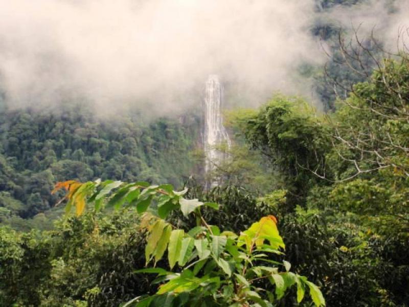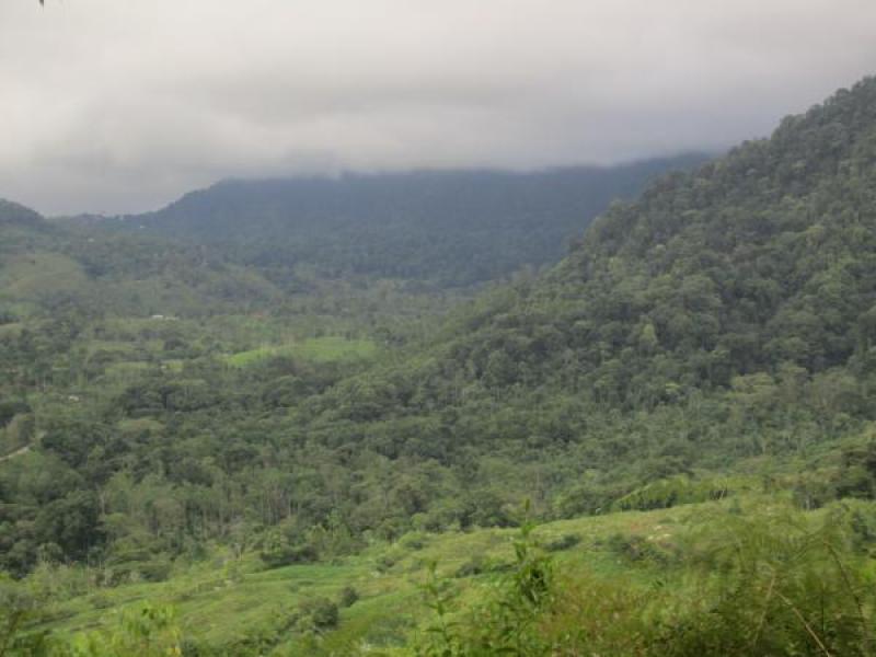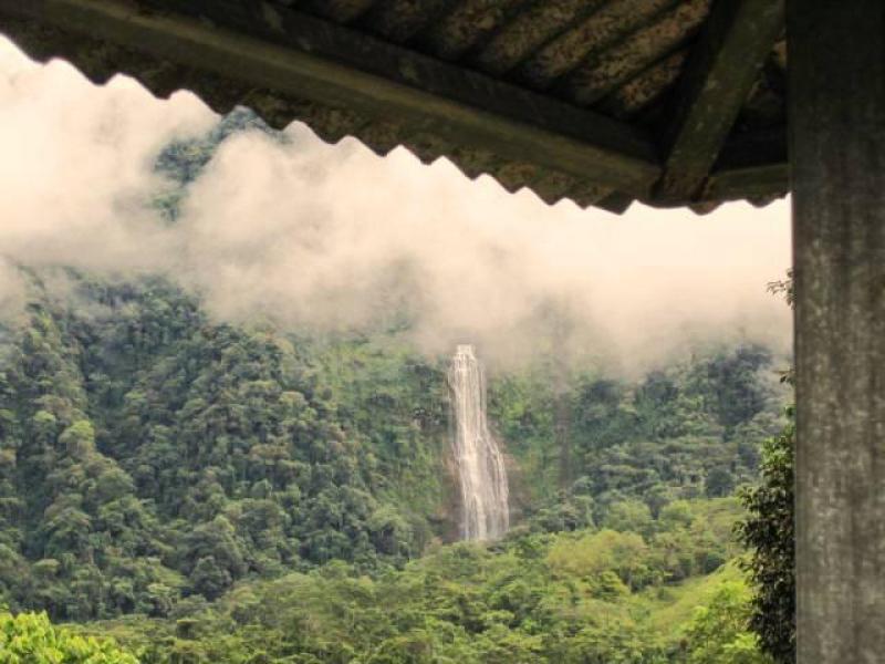 This parcel gently slopes downhill in the direction of the 600 foot Diamante waterfall with a 250 meter private road leading to a large plateau overlooking the Diamante river valley, where you will find a quaint little octaganal cabin with a viewing platform at the level of the canopy below.