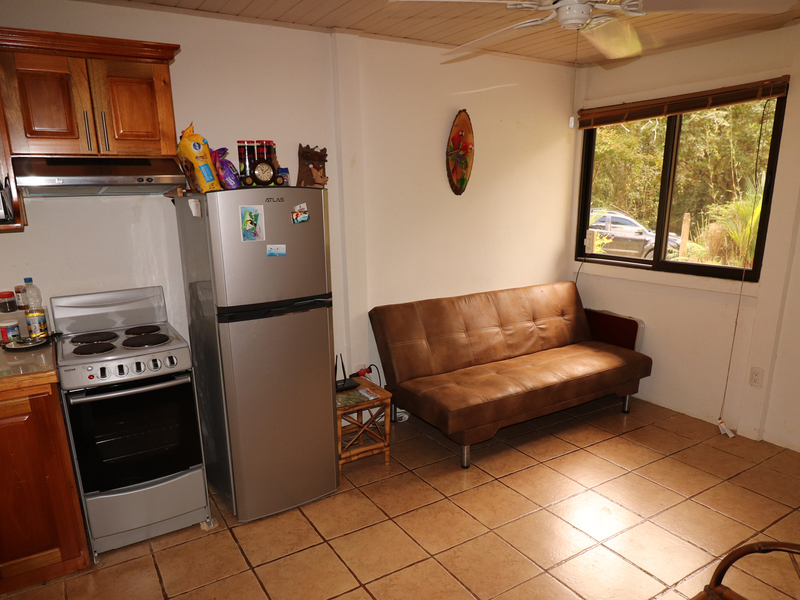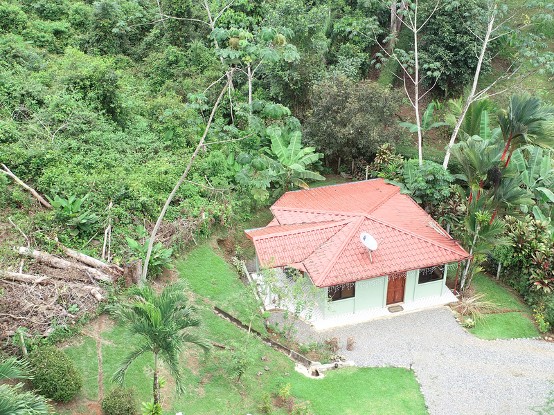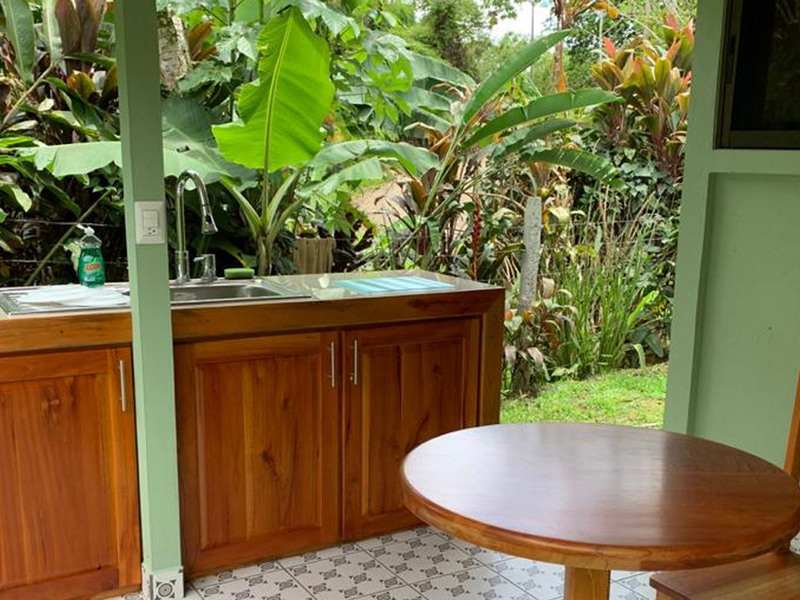 The one-story home is perfect for a modest vacation rental or as a great place to retire and live a simpler life in the country with none of the hassles. The cottage has two outdoor seating areas including one with outdoor sink and storage cabinets. Both outdoor living areas allow you to take advantage of the incredible climate for which Costa Rica is famous while observing nearby wildlife doing their thing. The back terrace faces an area filled with trees and wildlife as far as the eye can see so you feel surrounded by nature. In the distance, you can see the lush green mountains with seasonal waterfalls. The front yard provides plenty of off-street parking plus ample room to plant a garden or an orchard filled with your favorite tropical fruits that grow in abundance here.