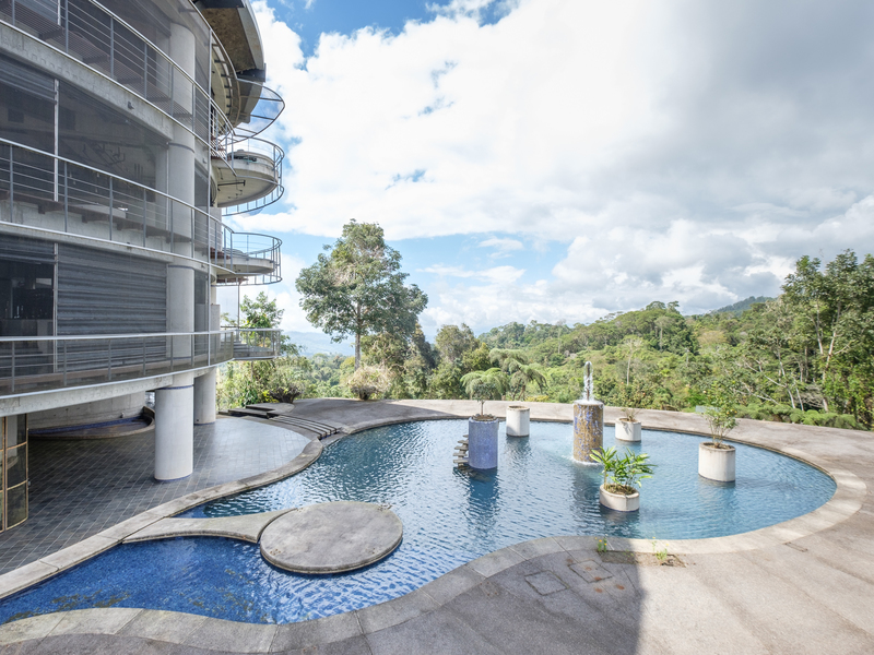 Sea Ridge Reserve is a private, natural, 945-hectare, retreat in the coastal mountain range of Costa Rica’s Southern Zone, overlooking Uvita and Playa Ballena. The vast majority of its hundreds of hectares have never been disturbed by human activity and remain home to all manner of wildlife. The existing improvements were installed by a previous owner to establish a personal retreat and nature reserve, and to offer facilities for a limited number of guests, staff, and necessary equipment. More than 25 fincas, united under single ownership, are located in 3 clusters stretching from the base of the Diamante Falls to the leading edge of the coastal mountains. Additional parcels, which could increase the land area to 1000 hectares, may be returned to Sea Ridge Reserve control in coming years. Details available during due diligence. The included residence at Sea Ridge Reserve is majestically perched along the ocean view edge of the coastal mountain range. Combined with its elevation of 2500 feet above sea level, the residence offers enormously expansive views of the entire Costa Ballena region of the Southern Zone, including the “Whale’s Tail” beach, Playa Ballena. Its monumental 30,000 SF includes spaces for living, exhibits, guests, nature research, reception, and offices. The entire structure is integrated into the terrain, floating over a series of pools and guided streams of natural water descending from a waterfall a few kilometers to the northeast. The future scenarios for Sea Ridge Reserve range from maintaining its natural beauty and facilities as within the original vision, to a number of selective new scenaruios that would allow tourists, investors, educators, and researchers, to enjoy its environment, as well. Resources like water and electricity are available throughout the property, but final commitments for development scenarios will be subject to municipal codes and approvals.