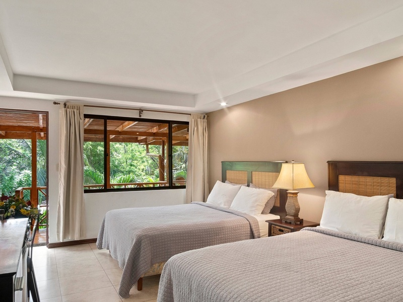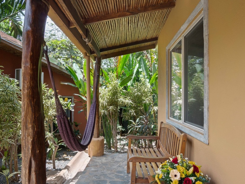 There are currently 8 deluxe rooms and 5 quaint bungalow rooms with a total of 21 beds and space for expansion (as mentioned)! The hotel rooms majestically wind through the lush tropical landscape where Howler Monkeys can often be seen swinging from the trees. The location is fabulous and only a 500 meter walk to the center of town and to the world famous beach, Playa Tamarindo!