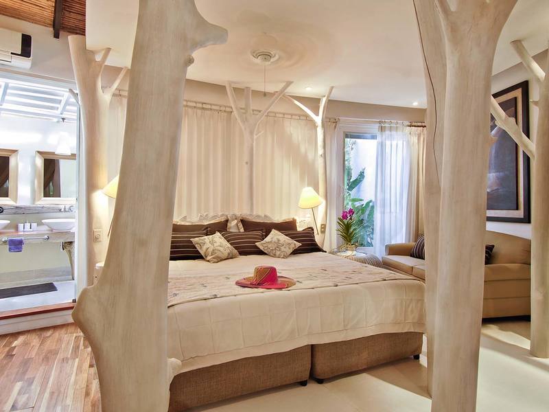 The main residence holds 8 bedrooms, each with a unique design and en suite bathroom, varying from 215 to 450 sq. ft. The residence can hold up to 21 persons, which is an important factor why the home has proved to be a successful vacation rental property. The bedrooms feature intricate detailing such as Caña Brava ceilings, stone and mosaic tiling, natural hardwoods and custom furniture.