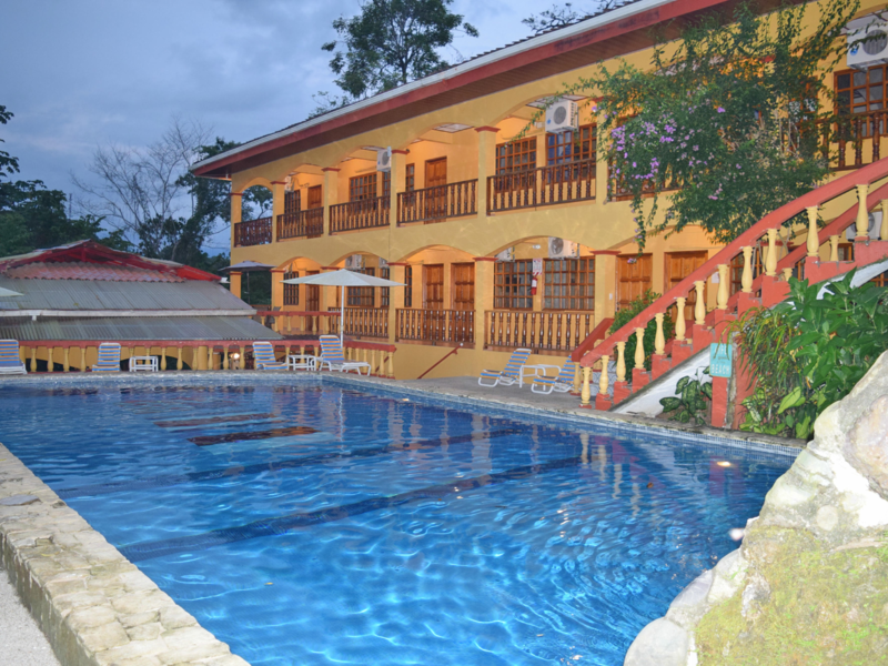 This Hotel is conveniently located on the main road half way between the Port of Quepos and Manuel Antonio National Park, the most famous wild life reserve and beach destination area in Costa Rica. It offers a secluded setting within the jungle, far away from traffic noise and city hustle/bustle. The beach is nearby and your visitors will enjoy the many birds, monkeys and sloths.
