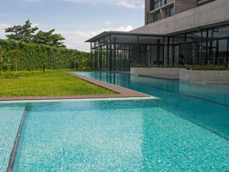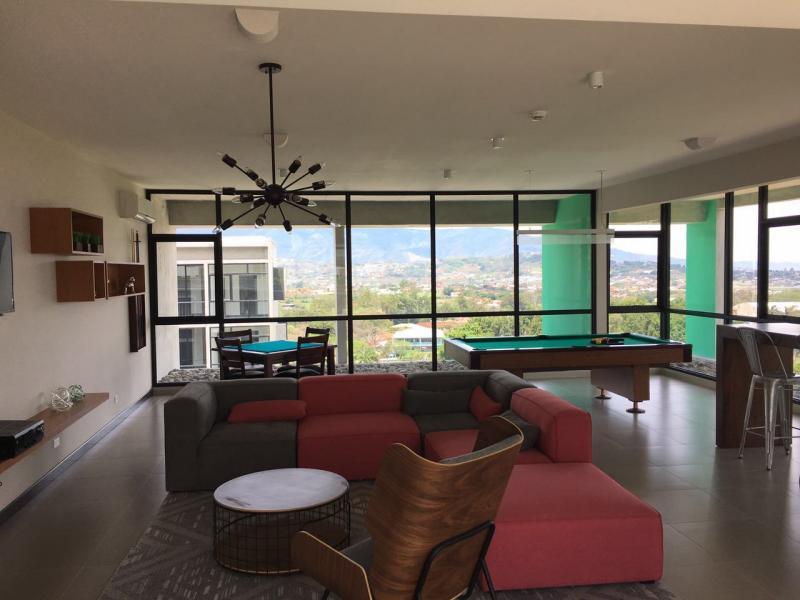 Apartamento en venta en Sportiva en Cariari de Heredia. The apartment is located in a complex of new apartments which promote a healthy lifestyle and have different amenities in common areas such as BBQ, Core Training, Co-Work, Garden Lounge, Gym, Lap Pool set with music under water and swim lanes Lobby, Outdoor Gym, Pilates Deck, Spa (Massage Lounge, Dry Sauna, Aqua Sauna) SkyLounge with panoramic view, Social Lounge Social Lounge, Yoga Deck, Zen garden The apartment has indoor parking for two vehicles, an elevator to access the main hall to the apartment, a four square meter warehouse. Upon entering we find a large social living and dining area, with an integrated kitchen with modern furniture with granite countertops and a breakfast bar, which has excellent natural lighting and laundry area. In the private area of the apartment is the master bedroom with WC and full bathroom, a nice view and great natural lighting. The secondary bedroom is comfortable with its respective closet and shares the full bathroom with the social area. The maintenance fee is 200 dollars per month, small pet is allowed.
