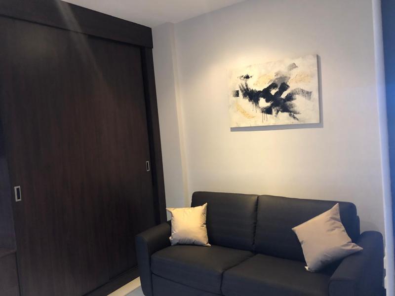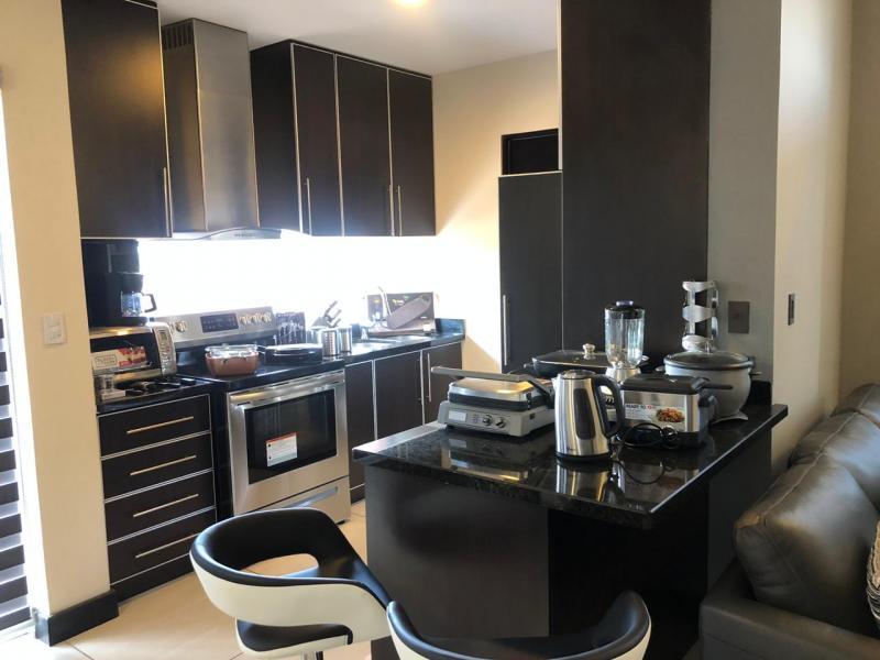The apartment has an integrated kitchen-dining room area, with porcelain floors, Euromobilia-style kitchen furniture, granite countertops, luxury furniture, brand new and all the appliances and complete kitchen accessories. The master bedroom has a private bathroom, walking closet, king size bed, linens, plasma screen and blackout windows. The second bedroom has a closet, screen, desk and a sofa bed, but it can also be used as a bedroom. The balcony has outdoor furniture and the laundry room is equipped with a high-tech, energy-saving washer and dryer The condominium includes the use of a BBQ area, 24/7 surveillance, it is close to schools and colleges, shopping centers and easy access by car, bus or similar. It also rents for $ 1,500 per month.