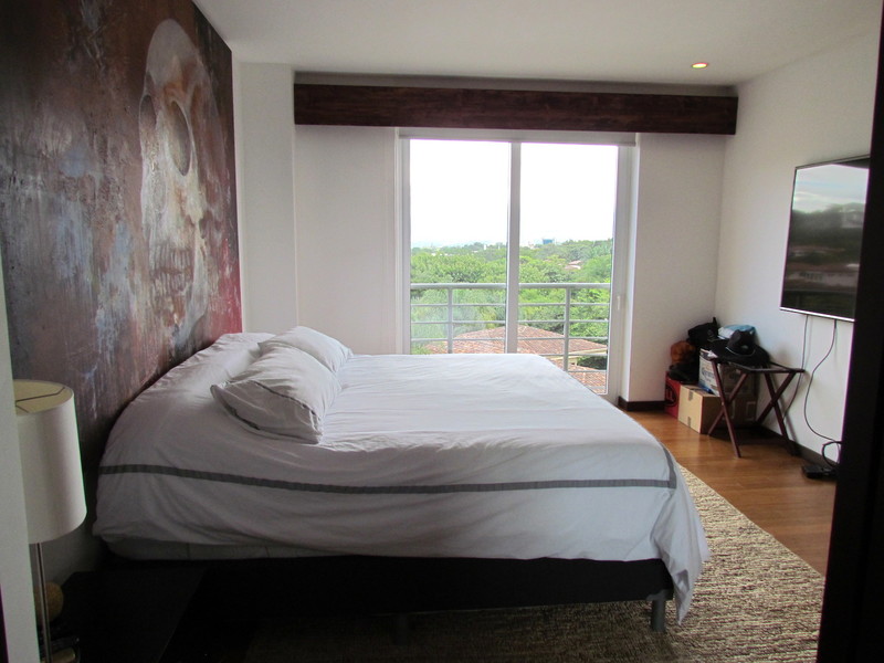 Located in the famous condominium Distrito 4 that features 3 pools, playground, gym center, yoga deck, clubhouse, green areas and 24/7 security, the current tenants have direct access to shops, restaurants, doctors, AutoMercado, Starbucks, etc. Located on the top floor, it has nice views on the mountains. There is a spacious living room with an open kitchen, fully equipped, and a bar. The master bedroom has its own bathroom, walk-in closet and air conditioning. The second bedroom has closets and a bathroom in front. There is also a pantry, laundry room and 2 under roof parking spaces. The apartment is rented for long term, with appliances included. Nice opportunity to invest and produce incomes right away. Call us now to not miss the occasion!
