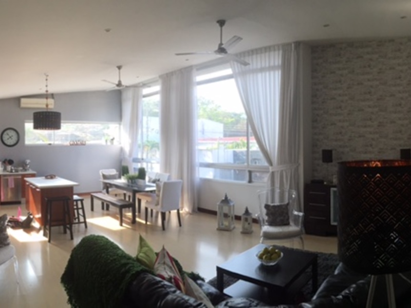 This modern apartment was designer remodeled and decorated with imported and international materials, laminate floors, triple height ceilings. It has 2 bedrooms, the main one with two walk-in closets, 2.5 bathrooms, a large social area, living-dining room and built-in kitchen, utility room and laundry area. The apartment has a cellar, garage for two cars, includes curtains, blinds, fans and A / C. Nice common areas with pool, 24/7 security, maintenance fee is $ 250, pets are accepted. Excellent opportunity at a great price in one of the most exclusive areas of SJ.