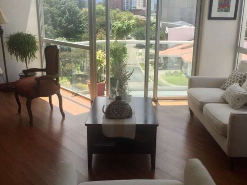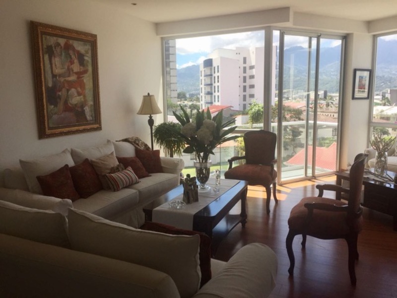 ESPECTACULAR APARTAMENTO EN TORRE EN ROHRMOSER This spectacular apartment is located in one of the most privileged areas of the West zone, close to shops, services, banks, as well as La Sabana. The apt is distributed as follows: Large social area with living room and dining room, kitchen in one room, laundry area and half bathroom for visitors. Secondary bedroom with closet, complete secondary bathroom. Master bedroom with large walkin closet and full bathroom as well as a spacious balcony. The apt has a parking space. The apartment tower has a pool, gym, events area, business center, concierge, children's play area, roof terrace with spectacular views, 24/7 security, maintenance fee is $ 230, pets are accepted.