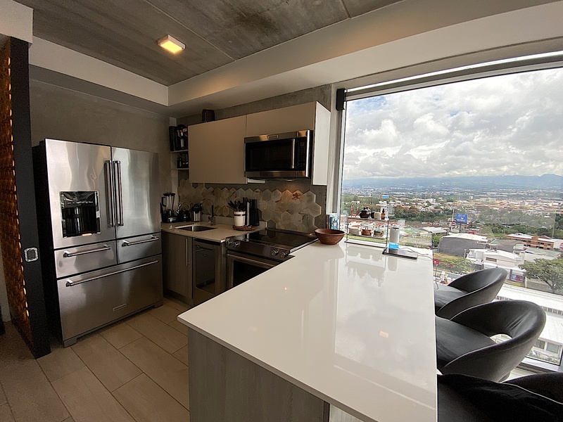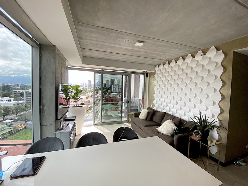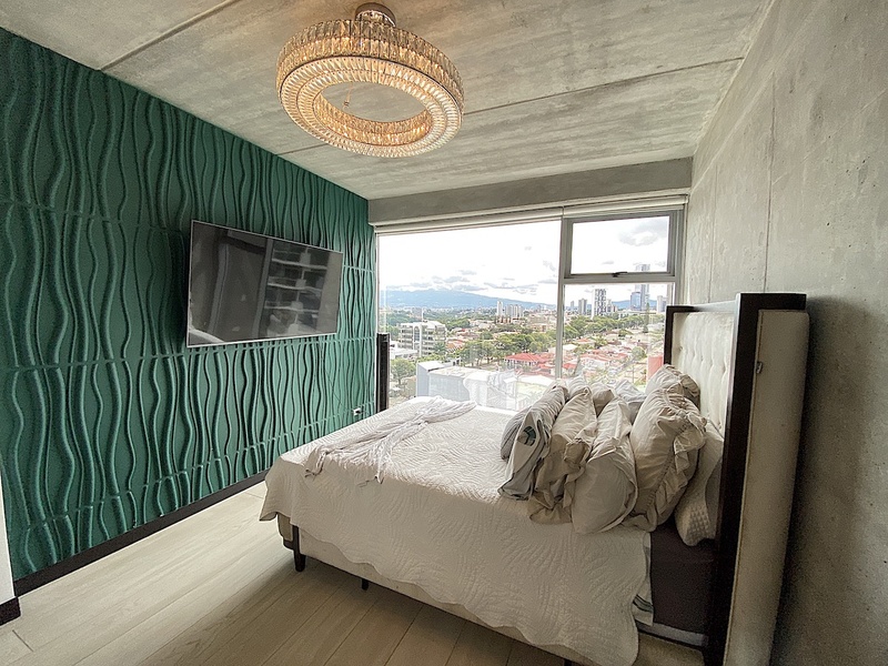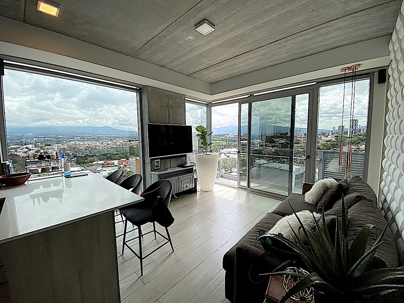 For Sale, Rohrmoser, San Jose, Luxury 2 bedrooms, 2 bath, Corner Apartment With 180 degrees View. Located on a high floor in one of the newest towers in Rohrmoser, this apartment combines luxury, comfort, and convenience. The condominium follows the latest trends of modernity and offers the best amenities: 2 pools, a jacuzzi, sky bar, 2 gyms, saunas, conference room, clubhouse, and 24/7 security. The apartment has a great layout. It offers a spacious living room with views, kitchen, two-bedroom, two-bathroom, and walk-in closet all fully furnished. This type of building is very unique because of all the amenities it offers in such a great location. Located in the heart of Rohrmoser, with the most strategic location of San José, just 10 minutes from Escazú, Santa Ana, or Heredia and a walk away from Parque de la Sabana. It is ideal for executives Working from home—or telecommuting, and employees from multinational companies. Don’t miss out - call us now!.