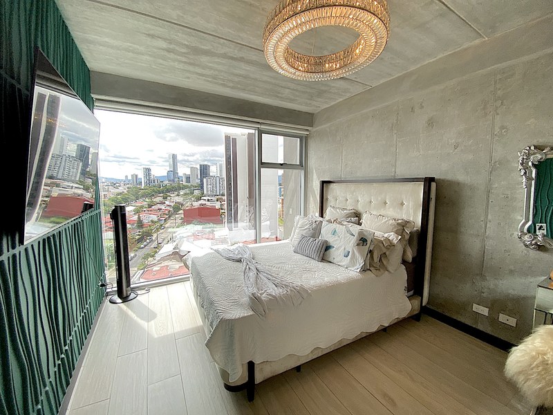 Se vende Rohrmoser, San Jose, Apartamento esquinero de lujo, 2 habitaciones con vistas 180 grados. Ubicado en un piso alto en una de las torres más nuevas de Rohrmoser, este apartamento combina lujo, confort y comodidad. El condominio sigue las últimas tendencias de la modernidad y ofrece las mejores comodidades: 2 piscinas, jacuzzi, sky bar, 2 gimnasios, saunas, sala de conferencias, casa club y seguridad 24/7. El apartamento tiene una gran distribución. Ofrece una amplia sala de estar, cocina, dos dormitorio, dos baño y walk-in closets todo completamente amueblado. Este tipo de edificio es muy único debido a todas las comodidades que ofrece en una gran ubicación. Situado en el corazón de Rohrmoser, con la ubicación más estratégica de San José, a sólo 10 minutos de Escazú, Santa Ana o Heredia y a un paseo del Parque de la Sabana. Es ideal para ejecutivos que trabajen desde casa -o teletrabajo- y empleados de empresas multinacionales. No se lo pierda, ¡llámenos ahora!