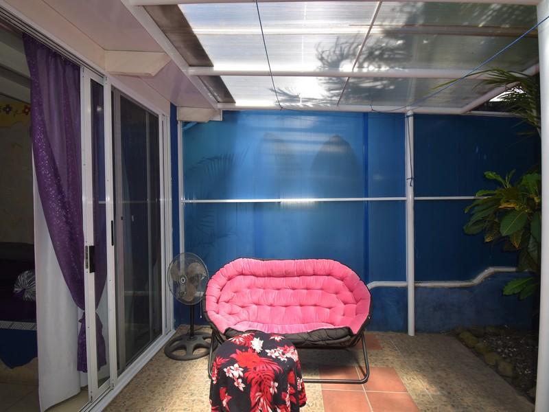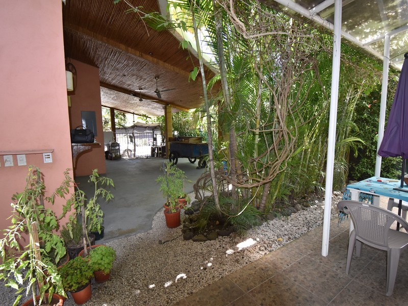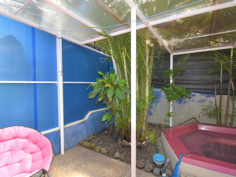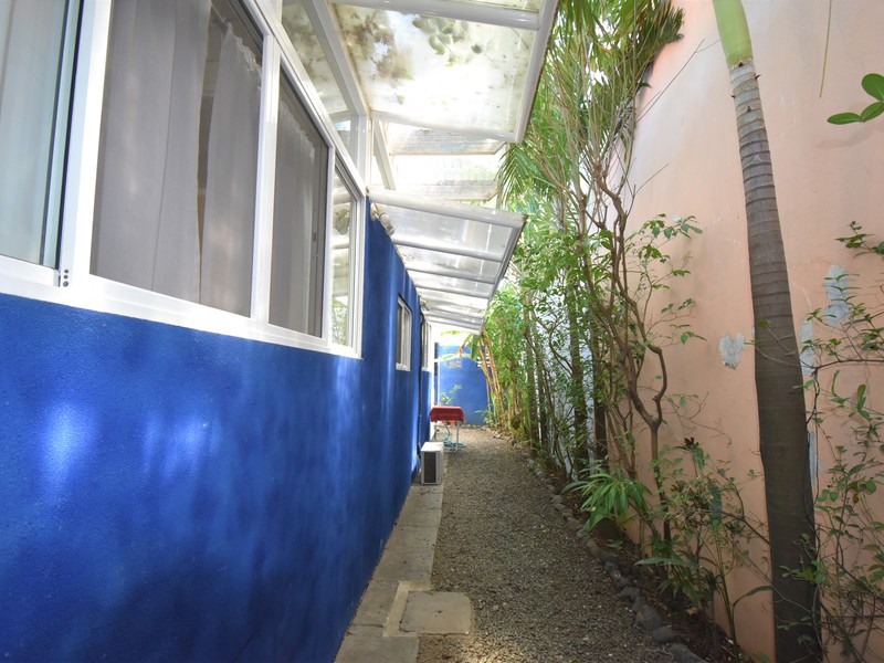 Behind the commercial spot, separated by vegetation, is a quaint two-bedroom, one bath home. Clean and spacious, the house has air conditioning and lots of windows that look outside to the patio. In the back of the house, there is a small jacuzzi tub, an area to entertain guests and a small laundry facility.