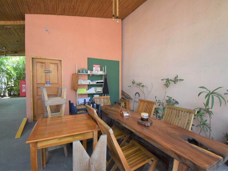 The commercial space includes 84 m2 of covered space at the front of the lot including 20 square meters of construction including a fully plumbed space for a prep kitchen, storage space and two bathrooms.