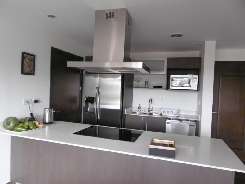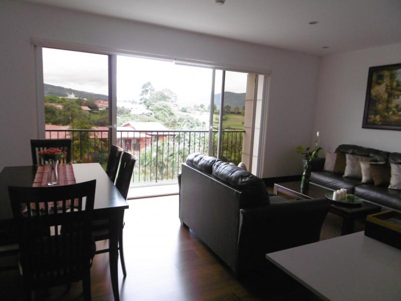 2 Bedroom Apartment in 5th. Flat in Tower in Curridabat It has 24/7 security with controlled access and beautiful views of the mountains. The apartment has a dining room, kitchen with Euromobilia type furniture with quartz top with breakfast bar, laundry room (the washing machine and tower dryer are included). The kitchen has an electric template, oven, dishwasher and extractor. Two bedrooms, the main spacious one with a large closet with sink vanity and full bathroom with furniture in the sink and air, the second large bedroom with closet, TV room or office. Full bathroom with furniture outside the bedroom to serve the social area of the apartment. The apartment has two indoor parking spaces and a good-sized storage room. It is delivered with blinds throughout the apartment. Common areas: it has a large games room with TV area, open terrace with BBQ and gym. The building has two elevators and a nice lobby to access the building. Maintenance fee $ 270 dollars per month, small pets are allowed. For Rent $1500