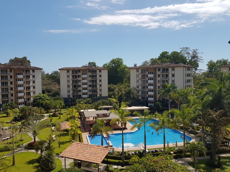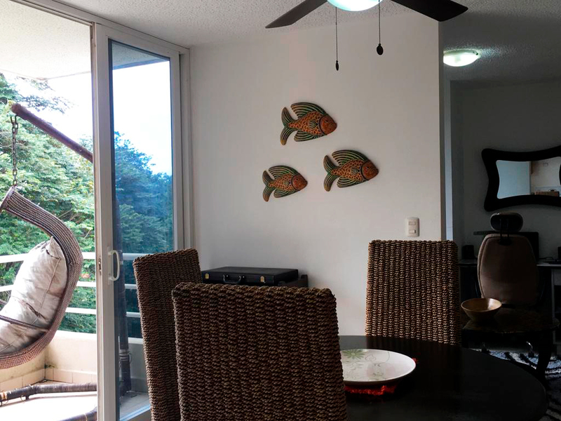 Views of the mountains and jungle from the 6th floor. Very spacious with open living and dining areas plus large kitchen with lots of cabinets.. 2 bedrooms and 2 baths and large balcony just off the dining room with great views for outdoor dining, entertaining, or just relaxing and enjoying the breezes. Adjacent to the living area is an additional room that would be ideal for office, tv room or guests, and a separate laundry room.