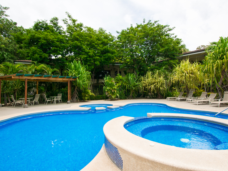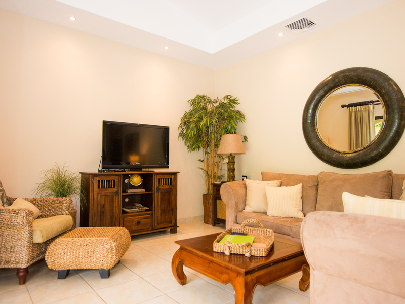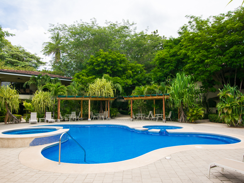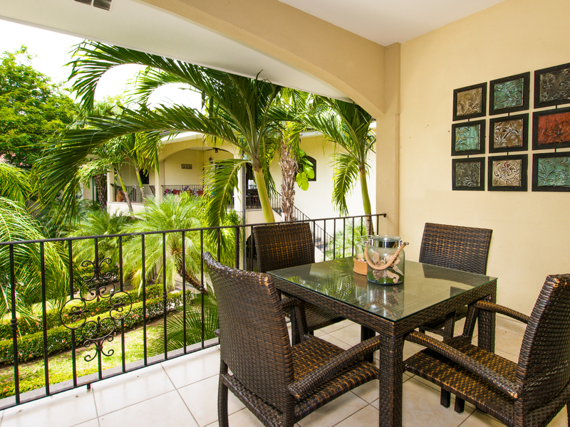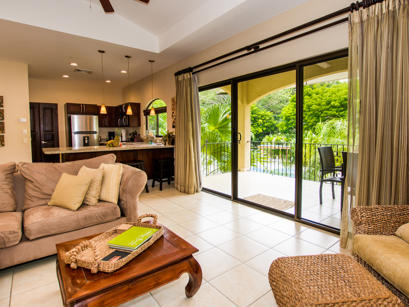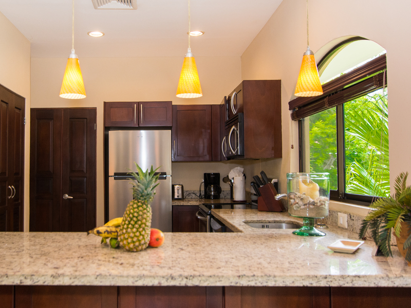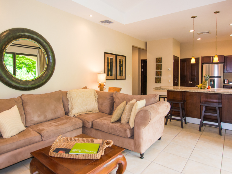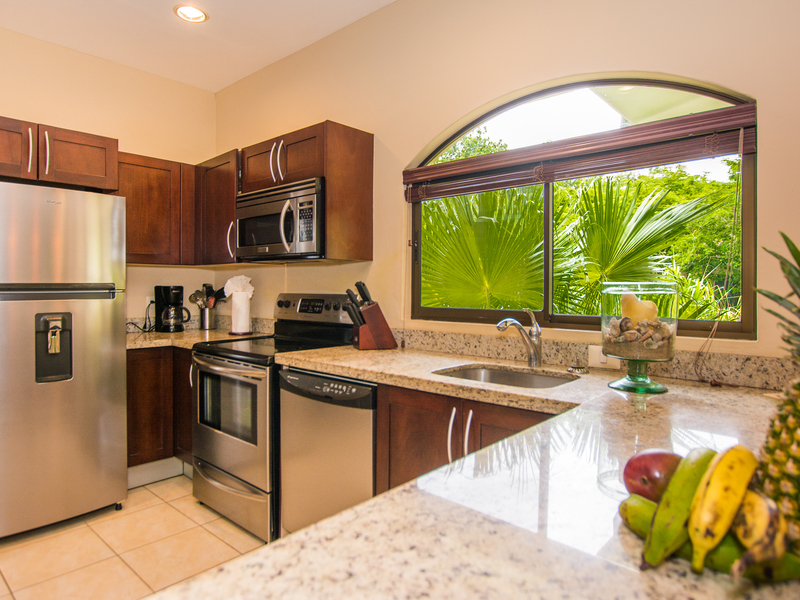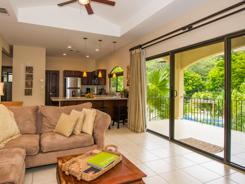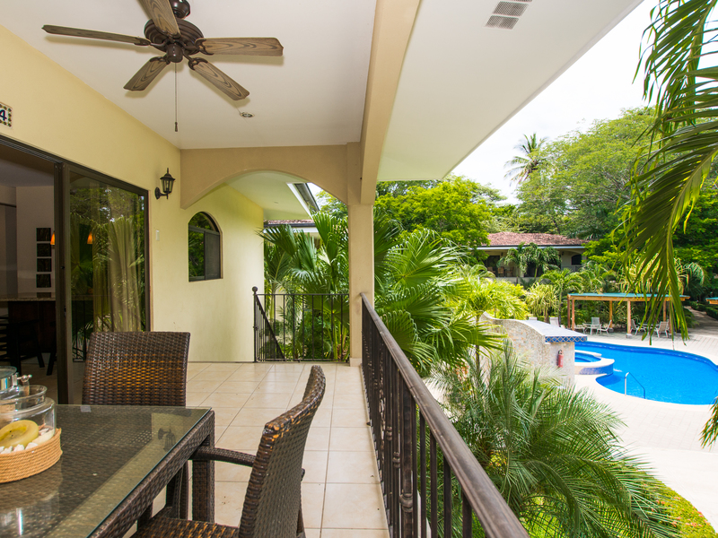 Casa del Sol #4, Playa Penca Resort, 3 minute walk to "Best Kept Secret Beach", Walled resort with 24/7, onsite security 2 Bedroom, 2 Bath Condominium in a 25-unit complex of residences surrounding a resort pool, Upper floor unit in 2-story villa building housing 4 total condominiums, Private, covered terrace overlooking resort pool, pool terrace, and gardens, Great Room (Kitchen/dining/Living) has high, barrel vaulted ceiling Completely furnished - possibly the most beautiful interiors in the resort, Master Suite includes large master bath with large shower, separate whirlpool tub, and double sink vanity, Guest Bedroom with guest bath, Custom closet system, built into each bedroom closet, American granite/stainless kitchen with euro-style cabinets, Stacking washer/dryer in separate closet, Utility/storage room can offer owner's lockout area, Central air conditioning with recently replaced unit, Includes parking space inside secure perimeter,