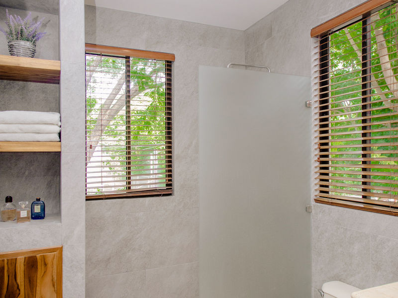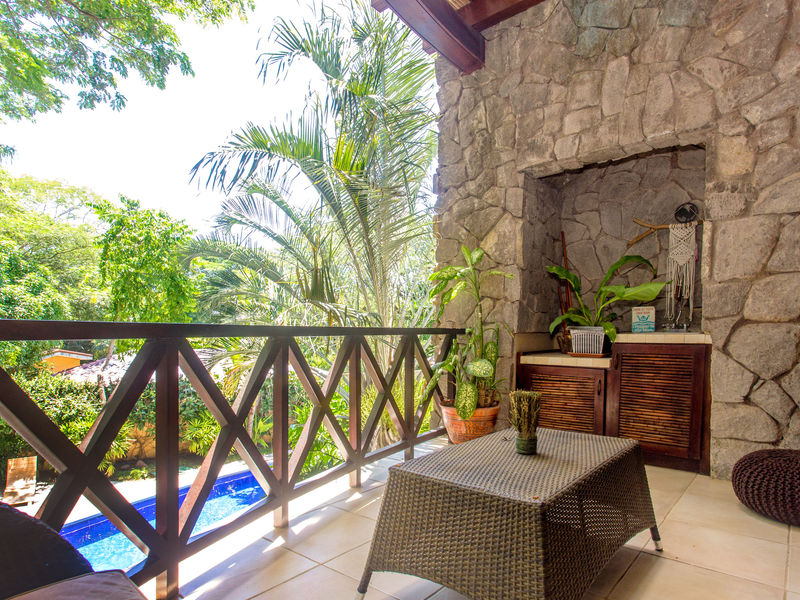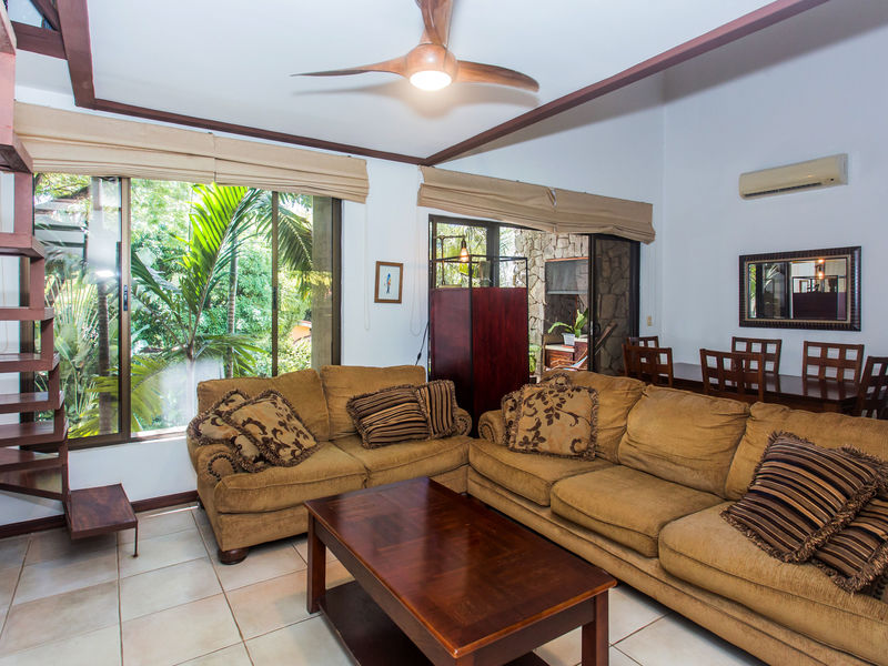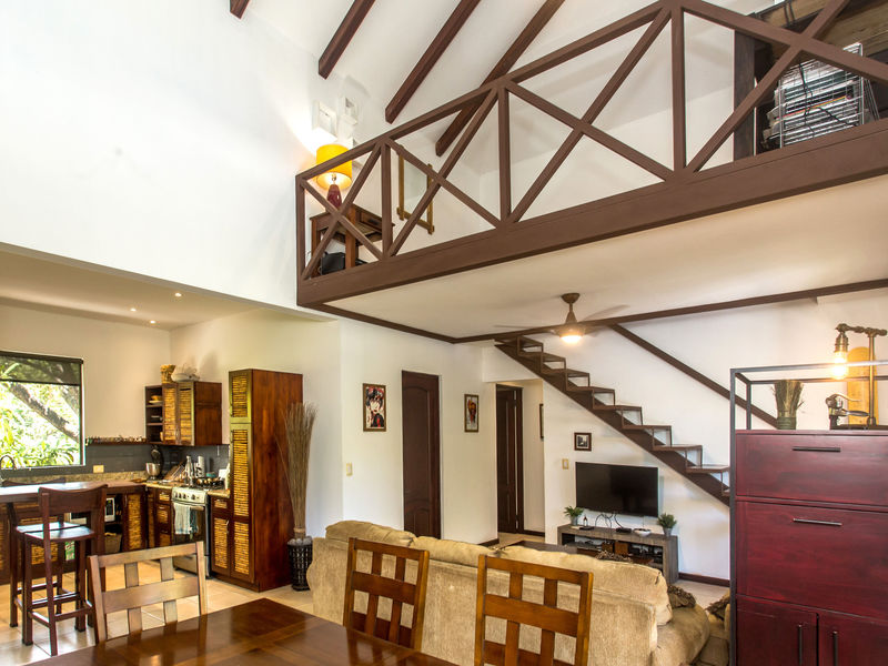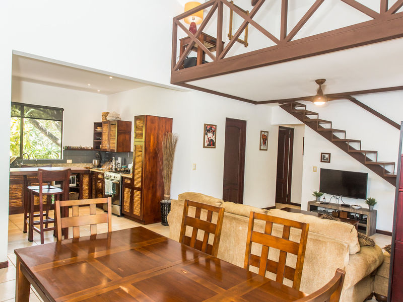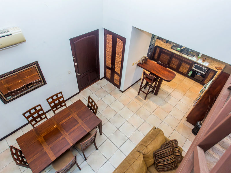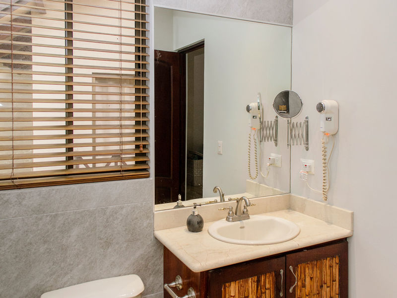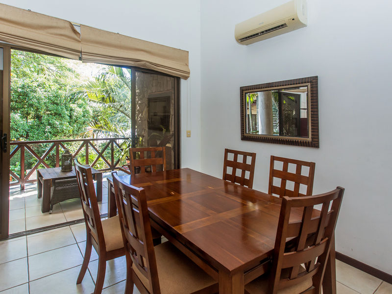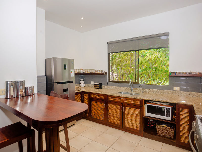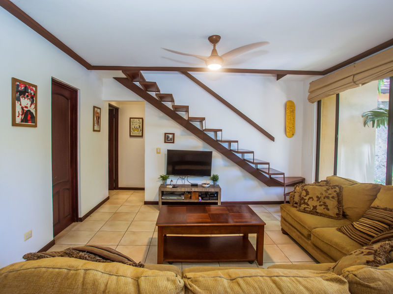 Sombras is one of the most beautiful luxury gated community in Playas Del Coco! Only 100 meters from the beach and 400 meters to downtown Coco where you have all services. The 2bed/2bath condo #203 is located in a superb spot, next to one of the two pools, on the second floor. This position within the community allows for both shade from the majestic trees on the grounds, but also offers lots of natural light to give the condo a bright and airy feel. Open the windows and balcony door to let the breeze flow through the entire condo creating a cool, fresh air environment. At night, relax to the sounds of the sea as you unwind from the day.