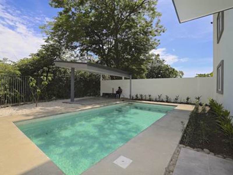 Brand New Build in Las Palmas! Walk to Beach Condos with High End Finishes in Private 6 Plex Complex in Playas del Coco. These 2 bedroom, 2 bathroom condos are perfect for the Buyer who likes the concept of living close to the beach and downtown Playas del Coco but would prefer a larger living space with higher end finishes. This private, three story, complex has only 6 condos, with 2 condos on each floor. Each condo has a spacious great room with a large kitchen and living area opening out onto an ample private covered terrace. There are 2 bedrooms, each with a private bathroom and closet; as well as a laundry area. Built to the utmost standard of quality and energy efficiency these well built condos include all appliances and feature high quality porcelain floor tile, high efficiency sliding glass doors and windows imported from Canada along with custom cabinets and doors. There is a large common pool and rancho area for lounging and BBQ’s as well as off street parking with charging for 6 golf carts. Move in to your dream condo you have been planning for years to enjoy on vacation or in retirement or earn rental income while you plan for your eventual move to Costa Rica. Inside the coveted Las Palmas community in Playas del Coco you are walking distance to the beach, numerous shops, restaurants and night spots and close walking distance to the vibrant beach town of Playas del Coco.