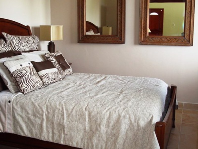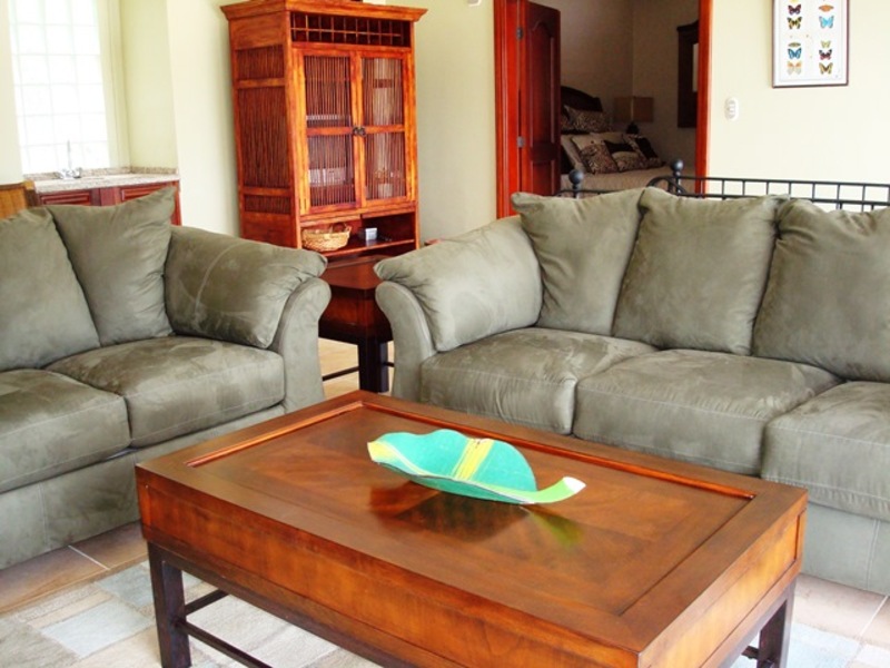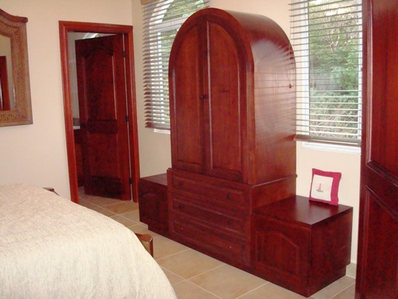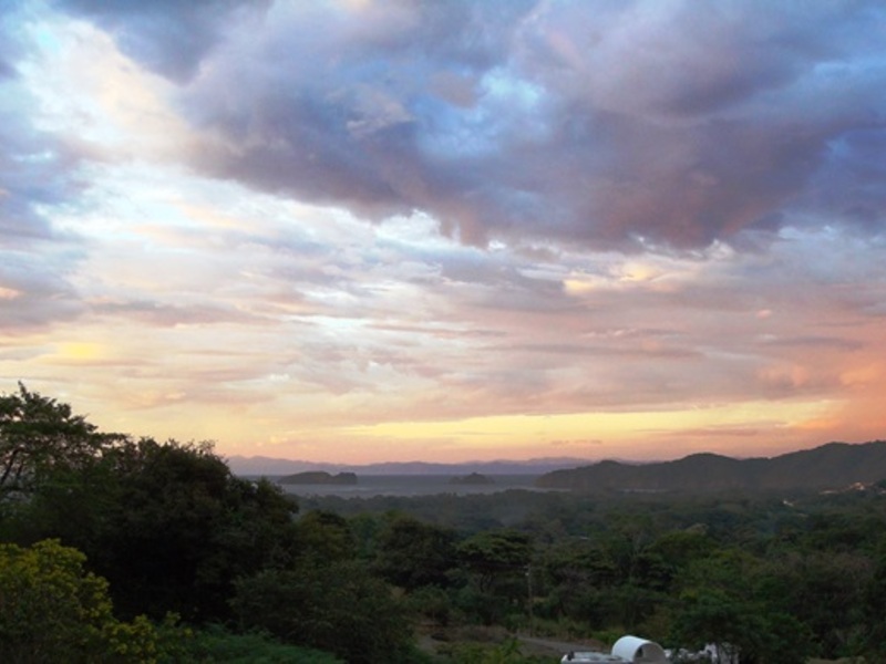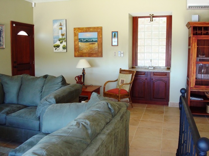 This home is ideally located in the tranquil south east hillsides of Playas Del Coco. You are just minutes to central Coco for all services and a short drive to the beach. Enjoy the peaceful, residential setting from this well designed home and floor plan. The home has two entrances with one on the first level and the other on the second level. The first level has a dining area, kitchen with upgraded customized wood cabinets and granite counter tops, spacious bar/counter top, guest bedroom and bath. The covered terrace off this level is surrounded by lush gardens, cool shading palms and a plunge pool/Jacuzzi nestled in the hillside along the terrace. This is a lovely spot to enjoy your meals, listen to music or just relax outdoors. The interior stairway leads to the second level; spacious living room with high ceilings and a crafted decorative wood piece that accentuates the ceiling design. There is a wet bar with a sink, granite counter top and arched window with bottled glass. The windows off the living area frame the incredible ocean, bay and island views. The second entrance is off the living room. The master suite and bath are on this level. Beautifully furnished – ready to move in.