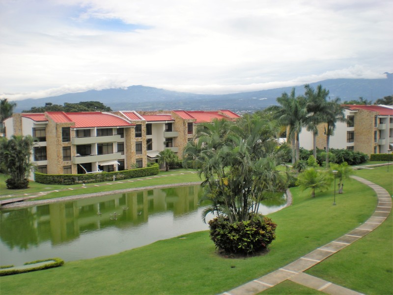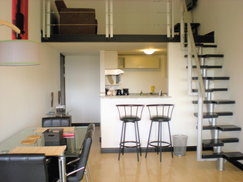 This lovely, furnished penthouse faces the lake and the surrounding mountains. The open living room, dining room and kitchen features high ceilings, a mezzanine, air conditioner and a small balcony. The master bedroom includes a queen-sized bed, walk-in closet, air conditioner and bathroom. The second bedroom is furnished as an office with a couch.. There are 2 covered parking spaces and a storage area.