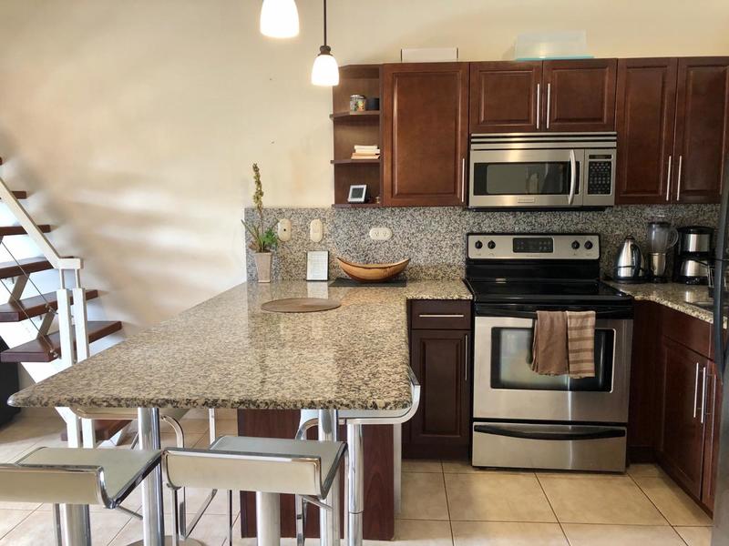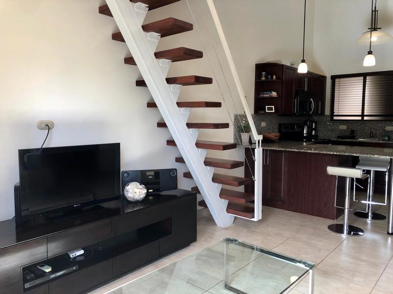 This beautiful and modern one bedroom, one bathroom unit PLUS loft space has everything you need in a turn-key beach condo. The owners added custom cabinetry and countertops in the kitchen. The loft space is a perfect extra bedroom or office space. The unit is bright, with a vaulted ceiling in the living room and is tastefully decorated. This condo works well as a full-time home or vacation rental property. Las Palmas has become a popular complex for it's affordability while offering so much! Contact christina@cbtamarindo.com for a tour