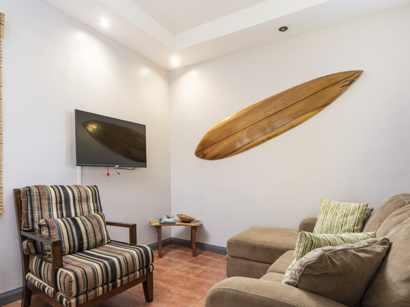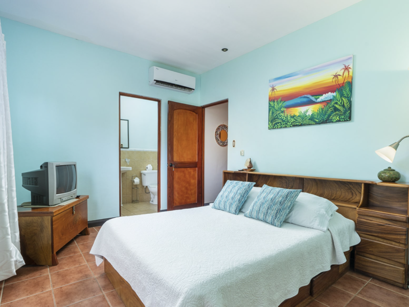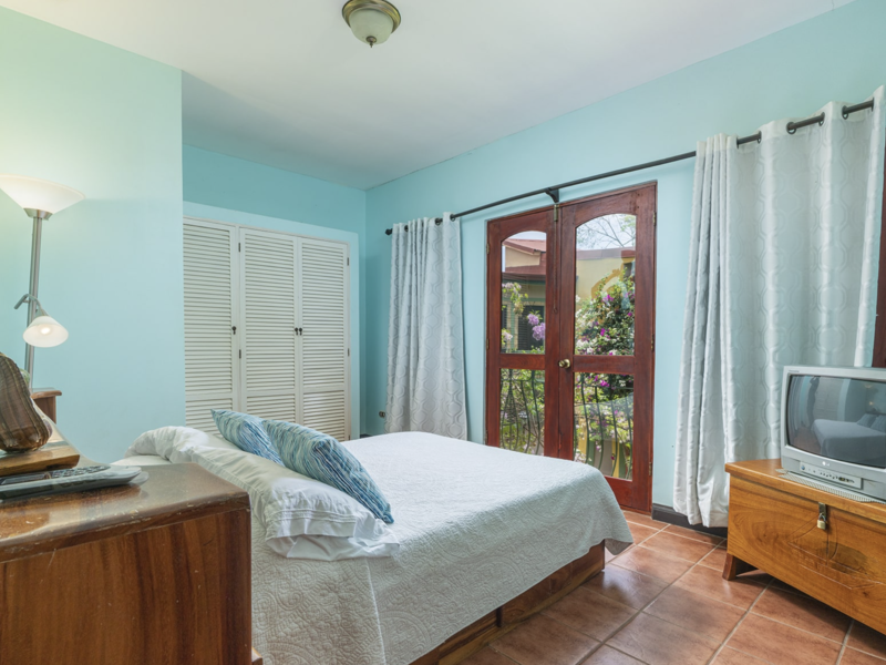 Upstairs the master bedroom comes with fitted closets, a double bed, air conditioning, ceiling fan and a full ensuite. There is a viewing balcony to complete this room.