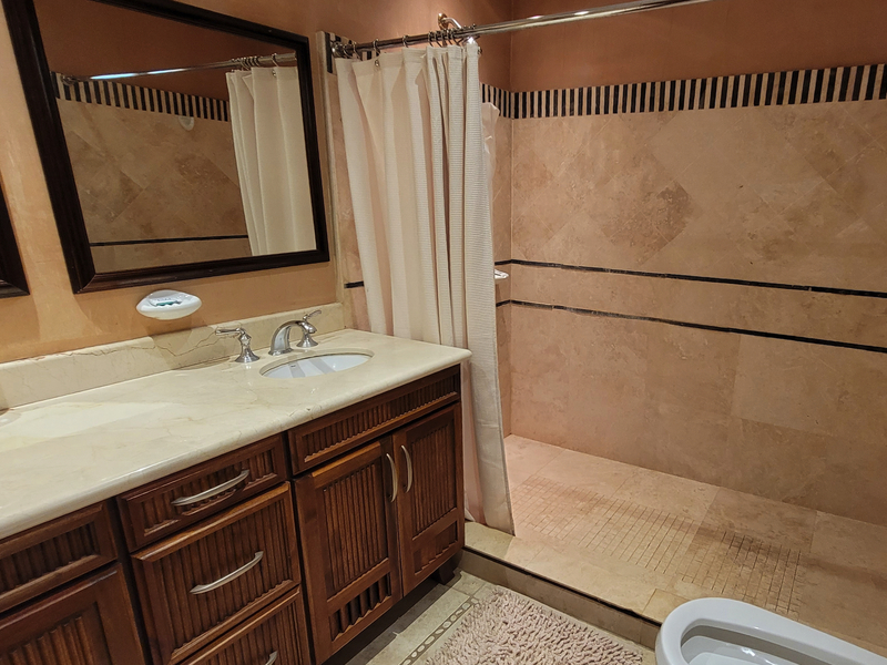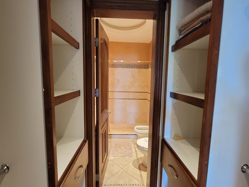 The master bedroom boasts a walk in closet, well equipped ensuite with marble double vanity sinks. The ocean view from the master bedroom allows a lot of natural light and there is also access to the balcony via french doors. The guest bedrooms features built in hard wood closets, ensuite bathroom and an adjacent balcony accessible only via this room.