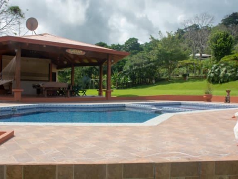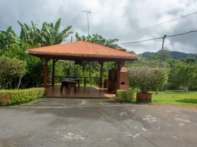 Location and Area: Fifth located in The Mercedes Quarter of Athens, 8 minutes from the center of that canton, 800 meters above sea level, with a total area of 7005 m2. Topography: Topography in its entirety flat, one hundred percent usable. Constructions: 1-It has a main house built on 2 floors. First floor with three bedrooms, one of which is the master bedroom with full bathroom and woking closet. A full bathroom for the other 2 rooms. Dining room kitchen in a single area, divided the kitchen by an island in solid wood with granite envelope, which functions as a breakfast bar. Kitchen furniture in solid wood and granite envelopes. In addition on the first floor there is a laundry room and large corridors on 2 wings of it. The house has hot water pipes for bathrooms and kitchen, window and wrought iron doors, floors and bathroom tiles in Spanish porcelain. Second floor is a single space, solid wooden floor with a large balcony. Main ranch built entirely of solid wood, hexagonal shaped, ceramic floors. It has a room with full bathroom and an additional full bathroom for ranch and pool users. Swimming pool in ceramic hob, with space exclusive for young children. Additional 4-Rancho. A ranch with barbecue, oven and kitchen in refractory brick, also built in solid wood and with ceramic floor. 2 small ranches of hexagonal shape, built in solid wood, covered with rustic tile and ceramic floor. 1 small ranch built in iron structure and covered in rustic shingle. Wineries. 2 cellars built in block structure. The small cellar has ceramic floors and the large cellar with polished floor. Sports courts. A football field 5 in natural grass, with artificial lighting. A beach volleyball court of regulatory measures, with artificial lighting, with full bathroom and grade in particular. Fruit trees and ornamental plants and green areas. There are approximately 60 fruit trees in production (Valencia orange, Washington and Malagueña, sweet lemon, mandarin, Creole mecino and lemon, grafted mandarin, carambola, caite guaba, Tomi Akin manga, guava). The fifth has large trees and ornamental plants of different types. The green area extends throughout the property in the variety of sweet zacate and has automatic irrigation supplied by its own perforated well of 50 meters deep with the necessary equipment and additionally for greater efficiency there is a water collection tank of 5000 liters with hydropneumatic system for better pressure. Perimeter closure. Perimeter closure in cyclone mesh on the northern and western borders, prefabricated wall in particular on the southern border and iron grille and concrete columns on the eastern border which is the front and access of the property. Access. The fifth has 2 accesses, one with gate with electrical system and the other with manual system, both duly paved. Parking. On the border that corresponds to the front of the property there is a private parking for 15 cars, built in concrete and with artificial lighting. Possibilities of financing with the owner.