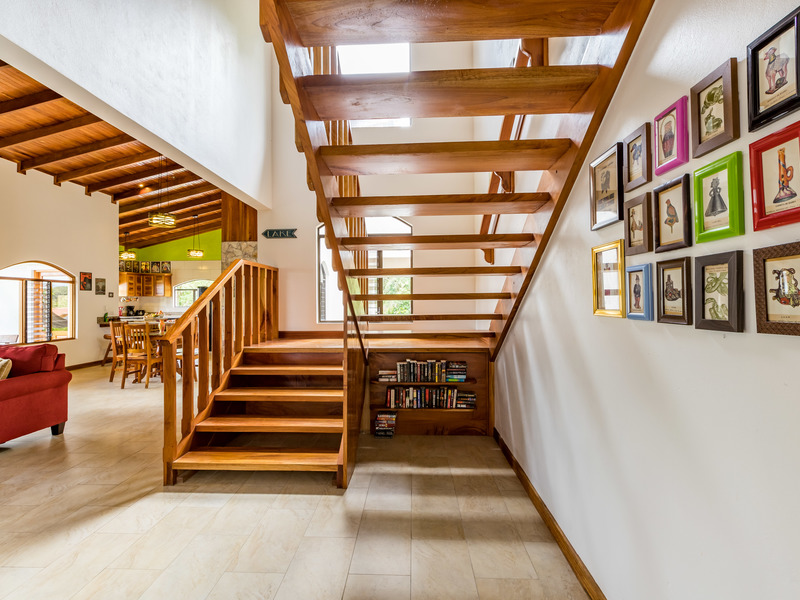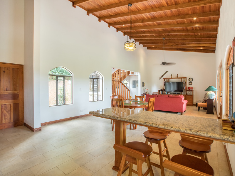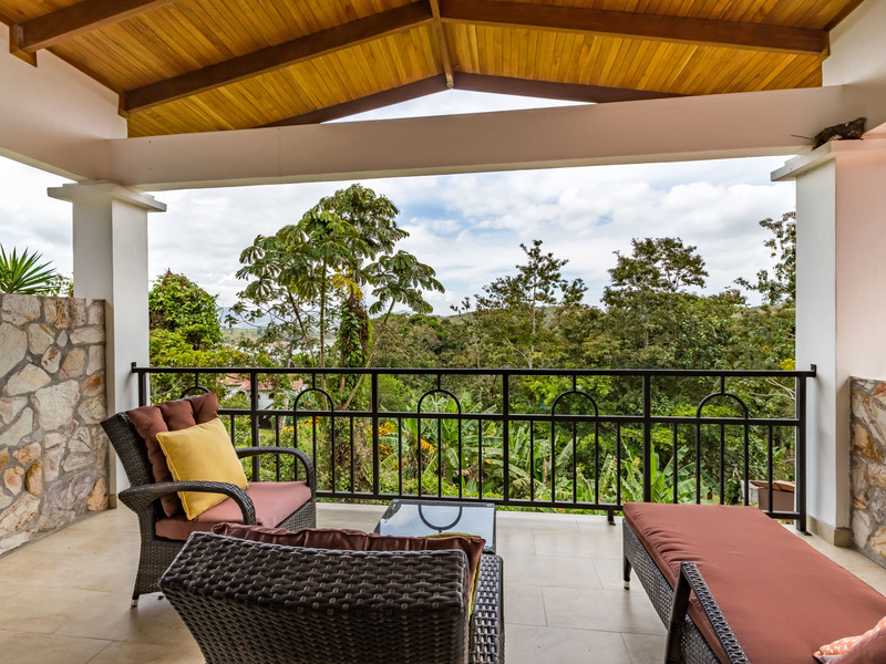 The community is private and has a gated access to the main street. The home has multiple terraces that have views to the lake and the community grounds. Very large and open design for the living and dinning rooms. The home has a beautiful hard wood stair case in the middle of the house with a custom book shel underneath. Enjoy the green scenery from your kitchen as your cooking and washing dishes. Lots of light with all the windows and no need for air conditioner as the temperatures year round are cool and fresh. The bathrooms are identical with double sinks, bedits, bathtubs, and showers. It is truly a beauty that must be seen in person.