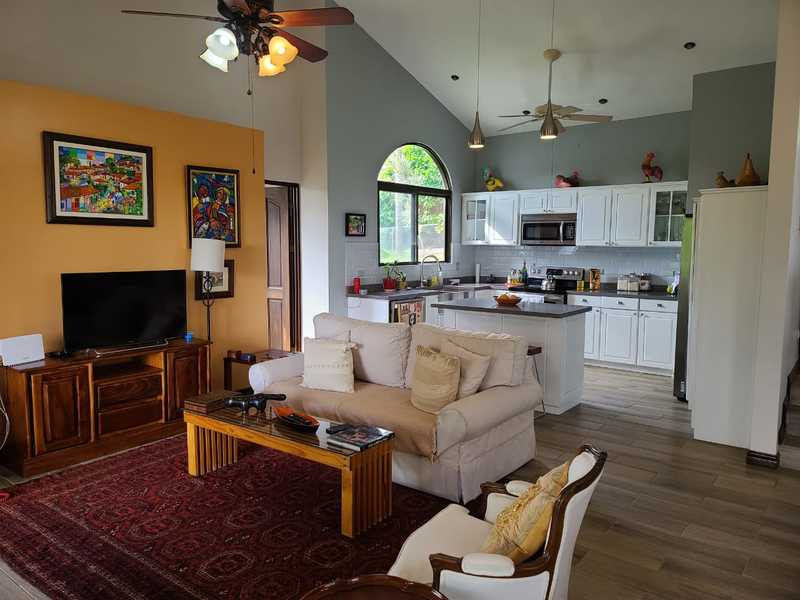 This super clean and modern 2 bedroom 2.5 bathroom home is located in Plantation Estates gated community in Rosario Naranjo. The views of the property towards Atenas are amazing. The home has an open living / dining floor plan with lots of glass. The kitchen is spacious and modern. The bedrooms have walk-in closets, private bathrooms, and sliding glass doors that lead to a large deck. The gardens and land are top-shelf. There are dozens of fruit trees, and a nice rancho that is perfect for entertaining.