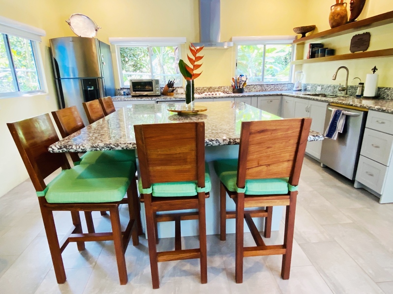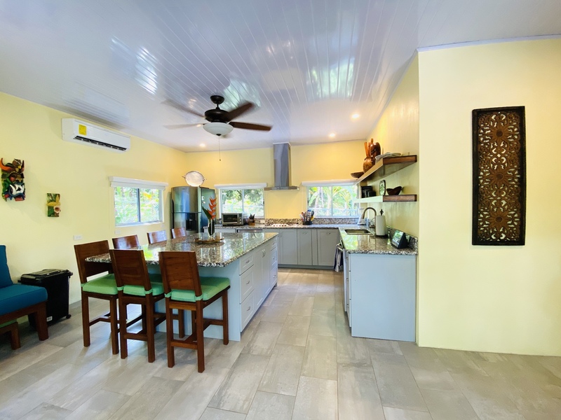 As you enter the home through a new electric gate, there is plenty of room to park under a new car port. A few steps away you will love the sound of the creek that runs 3/4 of the year with outstanding mature landscaping. Enjoy the sounds of the howler monkeys and watch as Toucans and Scarlet Macaws enjoy the nuts of native trees. The home is perfectly private with a good size pool for those times you need a dip into the water. As you enter the home a chef's kitchen awaits with granite countertops and new appliances with an extra-large island for ease of entertaining. Plenty of seating around as your guests enjoy the cool air conditioning inside or open the extra-large patio doors to allow the fresh air in. Off the chefs, Kitchen is a handy bar with extra-large TV for more entertaining pleasure. Your guests will be pleased with the beautiful guest bath and bedroom with tasteful furnishings that can come with this amazing home!