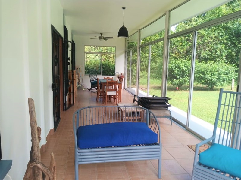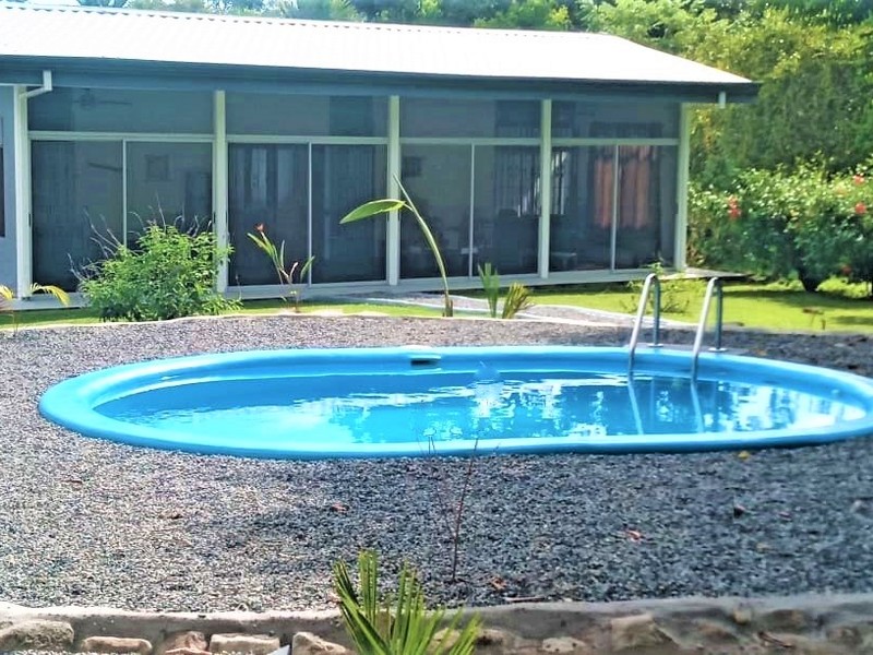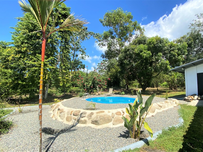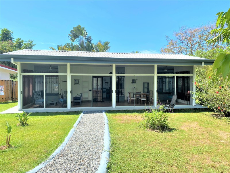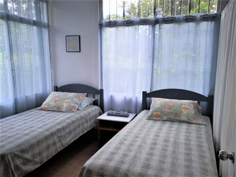 This beautiful little 2-bedroom, 2-bathroom fully furnished home is a located in the charming village of Ojochal which is only minutes from many of the gorgeous beaches and waterfalls this area is known for. It is within walking distance to several grocery stores, many great restaurants and cafes and two different rivers. The neighborhood is a wonderful mix of Locals and Expats from all over the world. The owners have spent a lot of time and effort adding improvements to the property such as a large pool, covered parking, fencing, landscaping, paths and gates. You will love the open and airy feel of this home. You can even hear the sounds of the howler monkeys in the distance calling out and see macaws as they fly over each morning! Enjoy walking in your garden picking mangoes, citrus and bananas from your trees. This property has so many possibilities! There is plenty of space on the lot to add an additional guest house, rentals, a pool rancho… whatever you like! There is also an additional home next door that is virtually identical for sale by the same owner. Just buy one home individually or buy both and live in one and rent out the other… or just own two great rental properties in this fantastic neighborhood. This really is a great investment opportunity! Homes in this price range are becoming harder to find as the community of Ojochal continues to grow in size and popularity. Don’t let this opportunity pass you by.