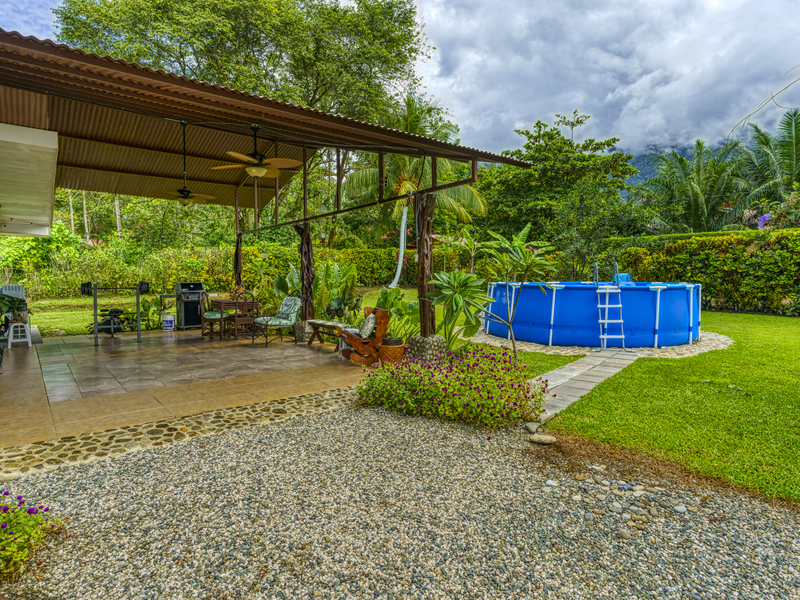 This well maintained home is spotless! It features a spacious, open floor plan, modern kitchen with breakfast bar & roomy dining area. The master bedroom has a beautiful view of the gardens!! Each room has their own AC unit. Very large covered patio equipped with ceiling fans - that you may just want to spend all of your time at enjoying the views!! Cool off in your private pool OR take a quick nap in your hammock! This is PURA VIDA!