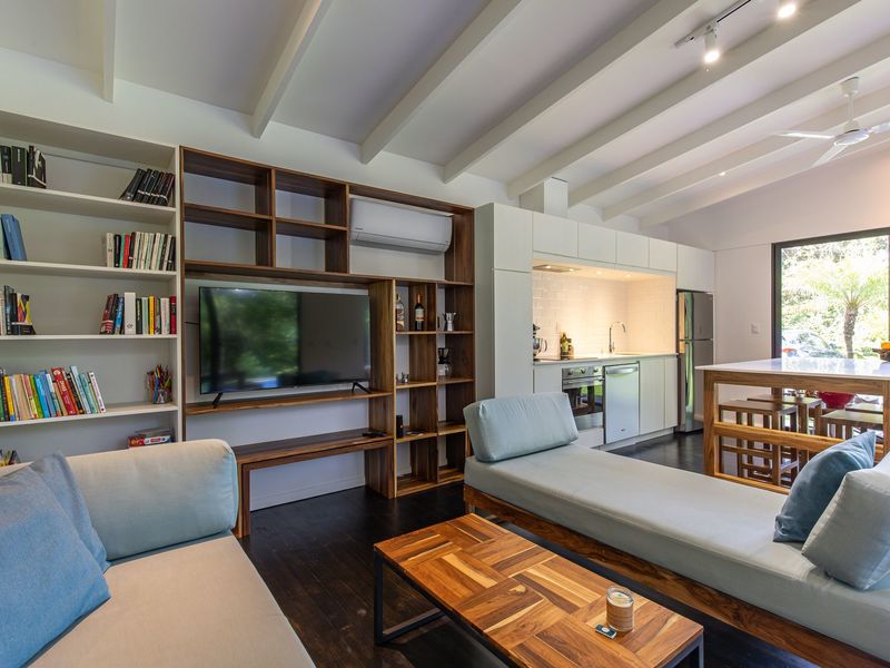 This tropical modern inside-outside living house has a strong Scandinavian-inspired design.