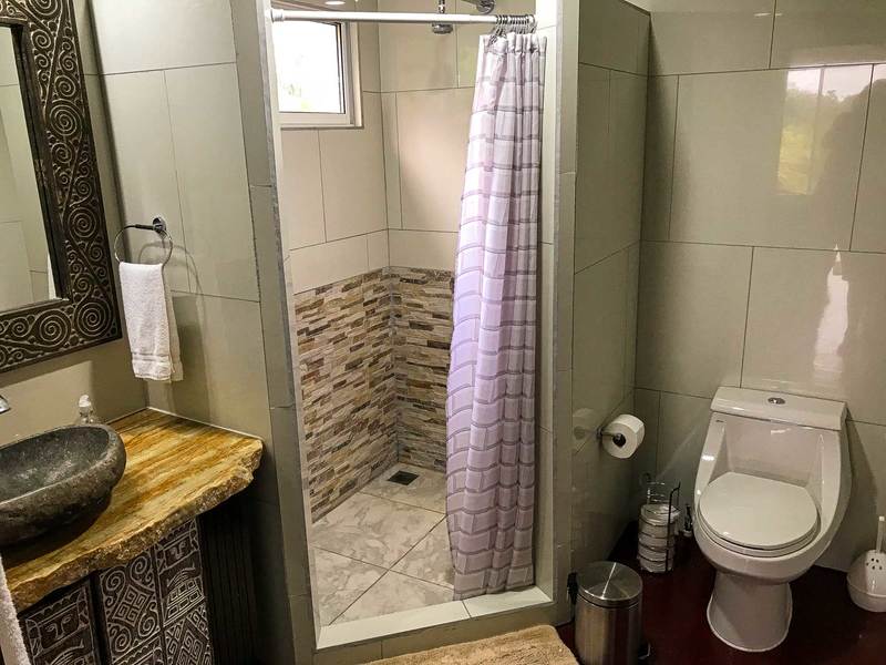 Upstairs you'll enjoy a standard steel-framed house with every comfort and luxury, including a newly refinished huge covered entertainment deck space overlooking the coastline, super high-efficiency AC units, large contemporary furnished living room, master bedroom and master bath featuring a freestanding stone bathtub with separate shower and windows overlooking the verdant tropical scenery and lush gardens. There is also plenty of room on the deck to add another bedroom and bath at very affordable cost. The spacious upstairs also features floor to ceiling windows and sliding doors overlooking the magnificent Pacific coastline, which you can also enjoy from your huge beautiful covered teak deck as well, which also overlooks a huge infinity-edge pool and Jacuzzi spa where you can relax and indulge your senses day and night, skinny dipping if you wish as there are no nearby neighbors to see you.