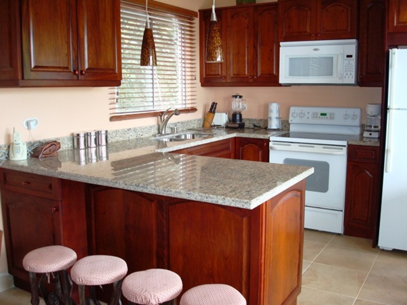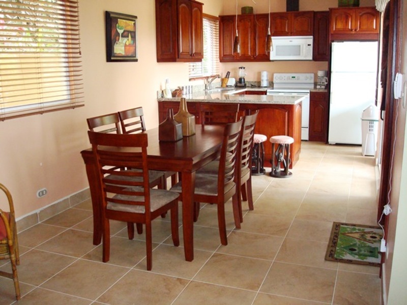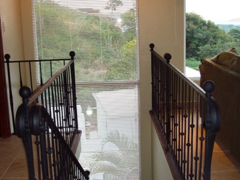 This home is ideally located in the tranquil south east hillsides of Playas Del Coco. You are just minutes to central Coco for all services and a short drive to the beach. Enjoy the peaceful, residential setting from this well designed home and floor plan. The home has two entrances with one on the first level and the other on the second level. The first level has a dining area, kitchen with upgraded customized wood cabinets and granite counter tops, spacious bar/counter top, guest bedroom and bath. The covered terrace off this level is surrounded by lush gardens, cool shading palms and a plunge pool/Jacuzzi nestled in the hillside along the terrace. This is a lovely spot to enjoy your meals, listen to music or just relax outdoors. The interior stairway leads to the second level; spacious living room with high ceilings and a crafted decorative wood piece that accentuates the ceiling design. There is a wet bar with a sink, granite counter top and arched window with bottled glass. The windows off the living area frame the incredible ocean, bay and island views. The second entrance is off the living room. The master suite and bath are on this level. Beautifully furnished – ready to move in.