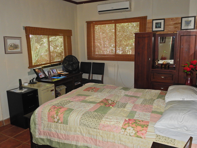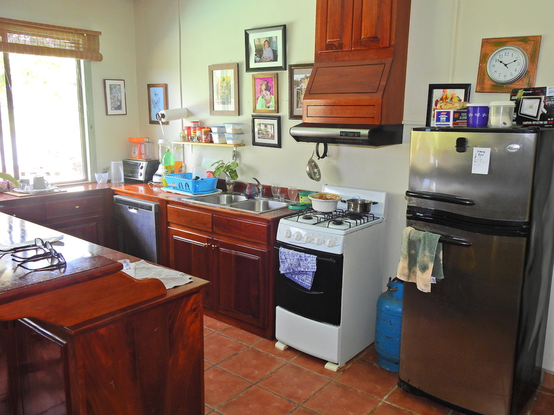 This 2 bedroom home with dock access is located at the entrance to the village of Sierpe and is right on the water. A dock could be installed very easily. There is also a large covered patio for outdoor living space with excellent views and a very large, functional shop underneath this patio. The house is very open and spacious, as is the kitchen. The kitchen has beautiful hardwood counter tops, a dishwasher and a great view from the kitchen window.