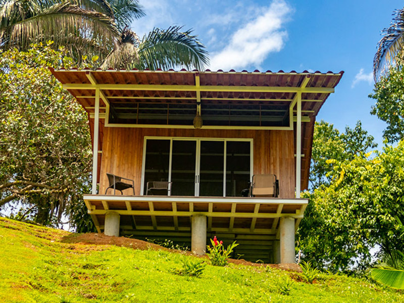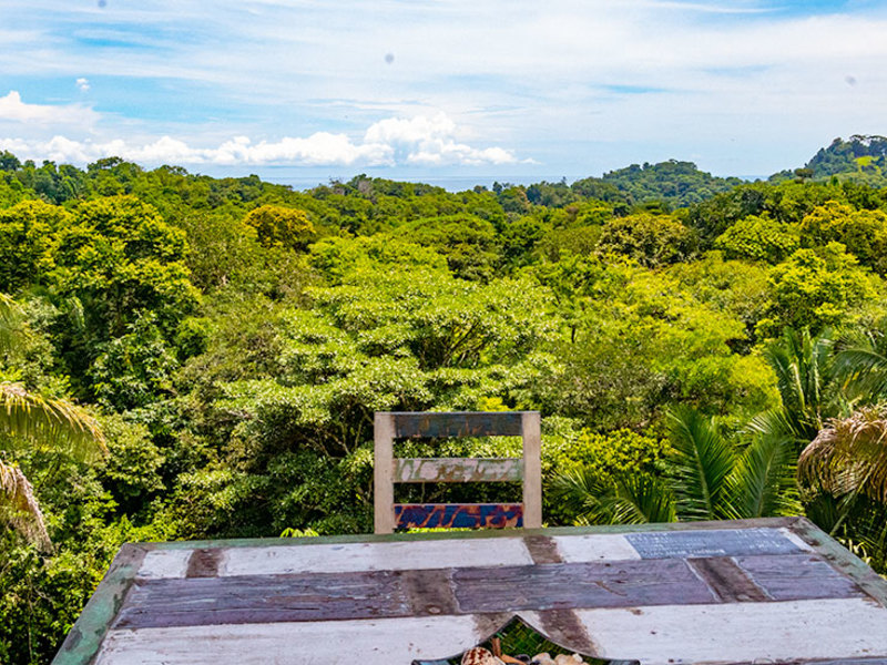 This property is strategically tucked away on a natural ridgeline offering a breathtaking view of the ocean and lush jungle landscape. Due to the specific placement of the house, you can enjoy the sunset going into the sea most of the year. What was once a pasture has been reforested to accommodate regional flora and tropical fruit trees such as Mandarina, avocado, banana, cashew, jackfruit, mangosteen, and more. The abundance of the forest below the property also provides corridors for passing wildlife.