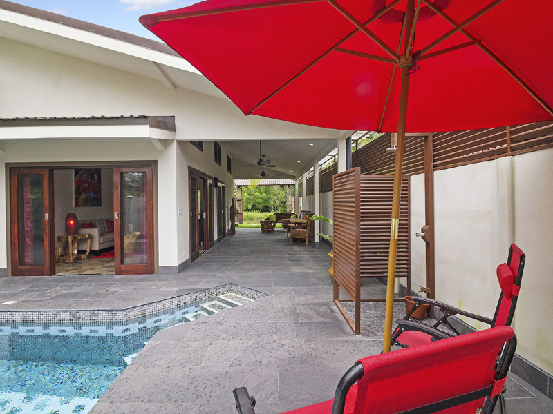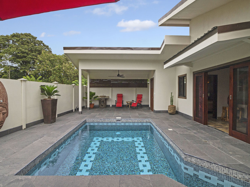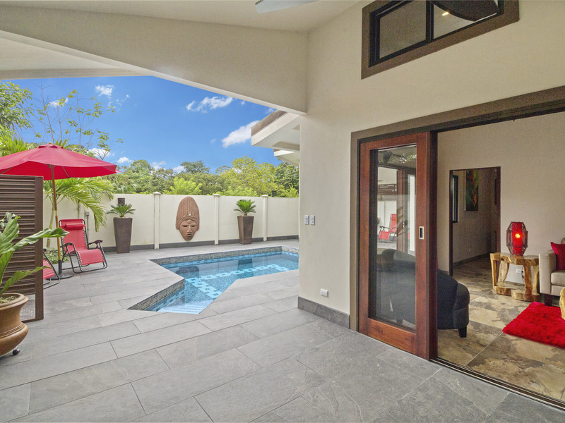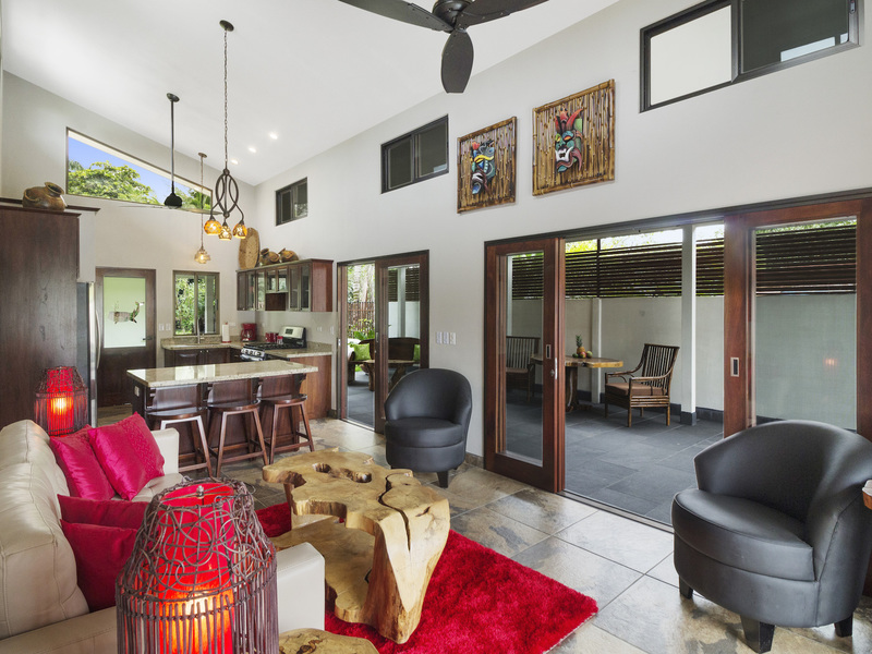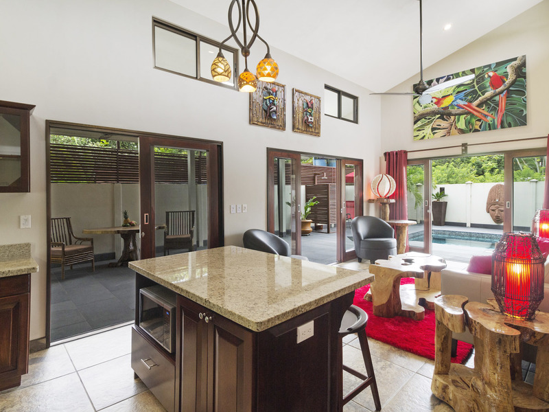 Morning coffee or a sunset stroll on the beach will be your toughest decision to make when you wake up in this luxury villa with a pool. Why not both, since you are just a few hundred meters from the ocean? Located in the lovely village of Bahia Ballena (Whale Bay) this fenced and gated home was designed to enjoy the outside patios as much as the luxuriously appointed inside.