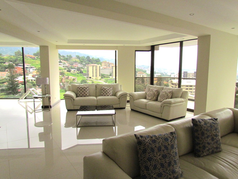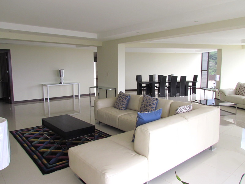 Panoramic Views For This Spacious 3B Penthouse For Sale In A Luxury Condo in Escazu. Located a few minutes from all services and easy access to the Route 27, this luxury condominium offers great amenities like a pool, gym, clubhouse, playground and 24/7 security. This apartment has breathtaking panoramic views of the city and the valley. With its great size of 330m2, the living room is huge and is extended by a terrace. The bedrooms are spacious and have wood laminate floors, the bathrooms have marble. The kitchen is modern with luxurious finishes, some storage places and a pantry; there is also a laundry room and maid’s quarters. What really makes this apartment special, other than the luxury finishes, is that you can enjoy a beautiful view from every single room. This apartment is for sale without furniture. We have various options in this condominium: from 240m2 with 2 Bedrooms at $310,000 for sale or $1,750 for rent, to 330m2 with 3 bedrooms at $480,000 for sale or $3,000 for rent furnished, depending on size and floor. Call us today to see our options.