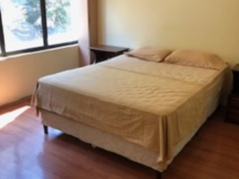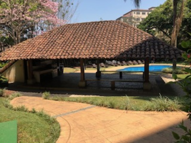 The condominium has two towers for a total of 40 apartments. Each tower has two elevators, a staircase and beautiful lobbies on all the finely decorated floors. The apartment is on the third floor. It has a dining room, balcony with a nice view, independent kitchen with its own breakfast area with granite countertops and a very spacious laundry room. The floor is ceramic. It also has two bedrooms sharing a bathroom and a master bedroom with its own bathroom and walking closet. Two of the bedrooms have air conditioning. The floors of the bedrooms and the living room are laminate. The complex has a swimming pool, ranch for activities, business center, party room, racquetball court and gym. It has two indoor parking spaces, 24/7 security, small pets are accepted and the condominium fee is 139,000 colones per month.