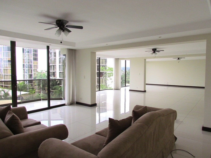 Vistas Panorámicas Para Este Espacioso Apartamento de 3H, en Condominio De Lujo, para alquiler, Escazu. Situado a pocos minutos de todos los servicios (supermercados, farmacias, bancos, restaurantes, etc.) y fácil acceso a la Ruta 27, este condominio de lujo ofrece excelentes areas comunes como: una piscina, gimnasio, casa club, parque infantil y seguridad 24/7. El apartamento tiene impresionantes vistas panorámicas de la ciudad y el valle. Con su gran tamaño de 330m2 internos, la sala de estar es enorme y se extiende hasta su terraza. Las habitaciones son amplias y tienen pisos laminados de madera; los baños tienen sus muebles con sobre de mármol. La cocina es moderna, con acabados de lujo, muchos gabinetes y una despensa; area de pilas (lavandería) y cuarto de servicio con baño completo. Lo que realmente hace este apartamento especial, aparte del espacio y los acabados de lujo, es que se puede disfrutar de una hermosa vista desde cada habitación. Este apartamento está para alquiler sin muebles y esta tambien a la venta a $420,000. Tenemos algunas opciones en este condominio: desde 240m2 con 2H a $310.000 a la venta o $1.750 en alquiler, hasta 330m2 con 3H a $480.000 a la venta o $3.000 en alquiler con muebles, depende del tamaño y del piso. Llámenos hoy para ver nuestras opciones.
