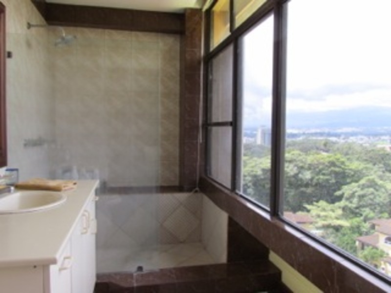 Apartment for Rent with Amazing View to the city: Location, Location, Location. The apartment is located in a highrise, which has a magnificent 360 degree view of the entire city, in one of the most exclusive areas in the country (Escazu). It has wood floors in the living room, dining room, office and the three bedrooms. Each bedroom has a full bathroom and the master bedroom has a walk-in closet. It also has a laundry area and maids room with a full bathroom. The apartment comes with two parking spaces and storage space right by them. The social areas are: pool, clubhouse, gardens and visitors parking. Additionally, the building has emergency stairs, a service elevator, a water treatment plant and intercom for the concierge and the security guards which are there 24/7.