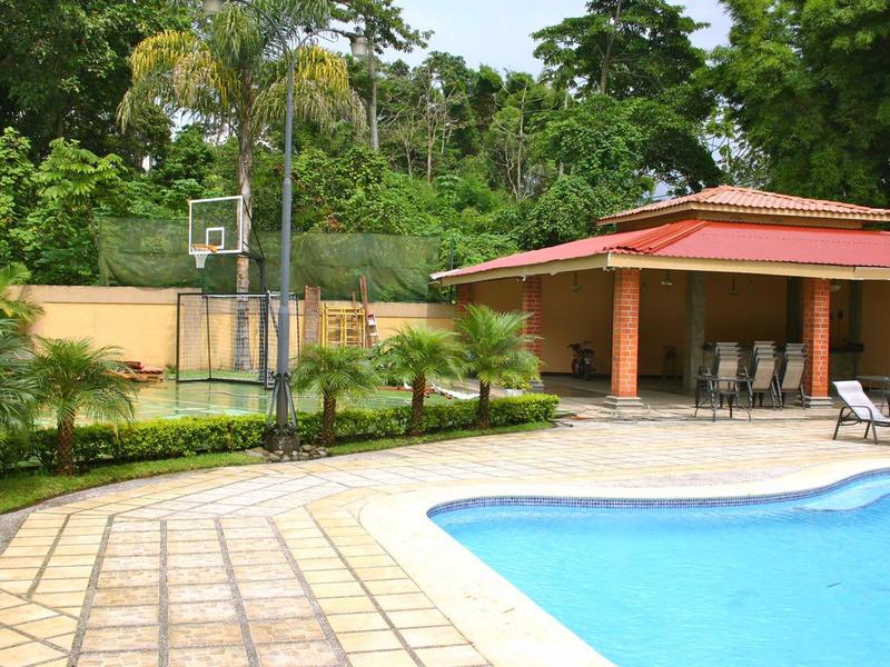 First floor: hall, half guest bathroom, large dining room, kitchen with granite countertops, terrace with cedar bar cabinet and granite countertops, garden. Office or utility room with full bathroom, laundry room, covered parking for 3 vehicles. Second floor: TV room, 3 bedrooms, the main one with walk-in closet and full bathroom with Jacuzzi, 2 bedrooms with closet with shared full bathroom. Common areas: ranch for events, playground for children, large pool, multipurpose court (basketball, soccer and tennis) green areas, 24 hour security, treatment plant. Maintenance fee $ 250 per month, pets are allowed.