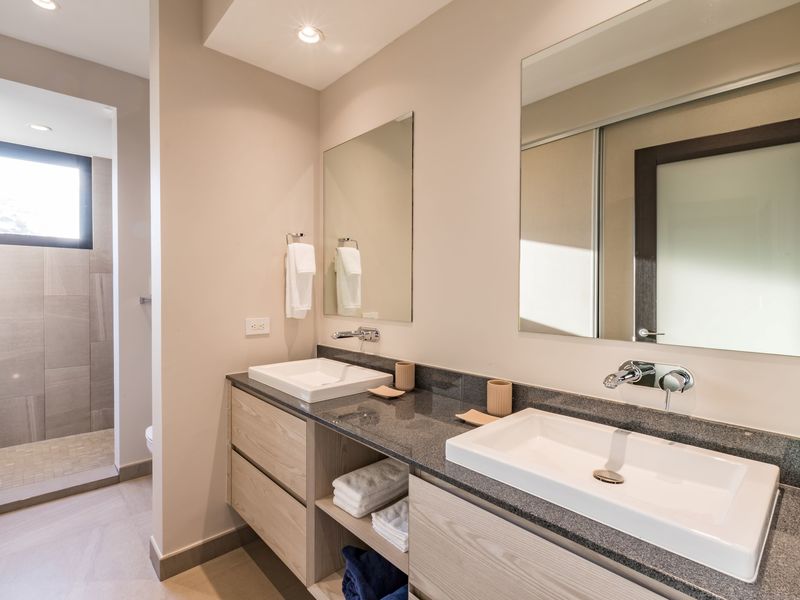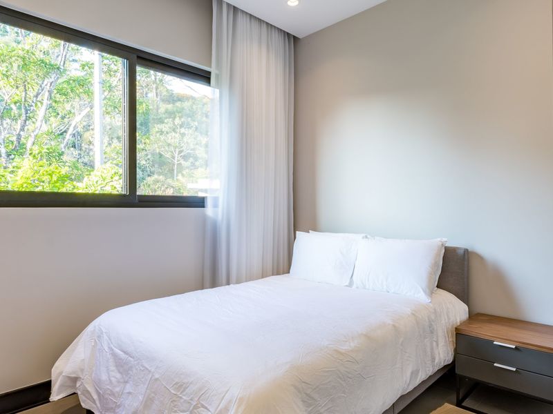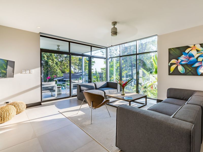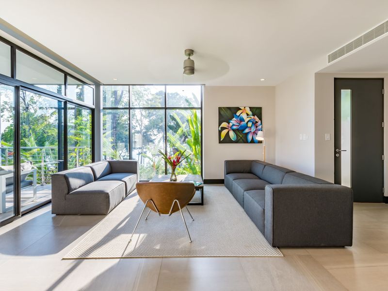 The development’s seamless blend of modern architecture into the rainforest canopy has given rise to life in a luxurious treehouse, bordered by the unrestricted passage of vibrant rainforest life. Privacy design features separate community life from a meditational outward focus, with floor-to-ceiling windows that frame breathtaking views of the rainforest canopy and Costa Ballena shore.