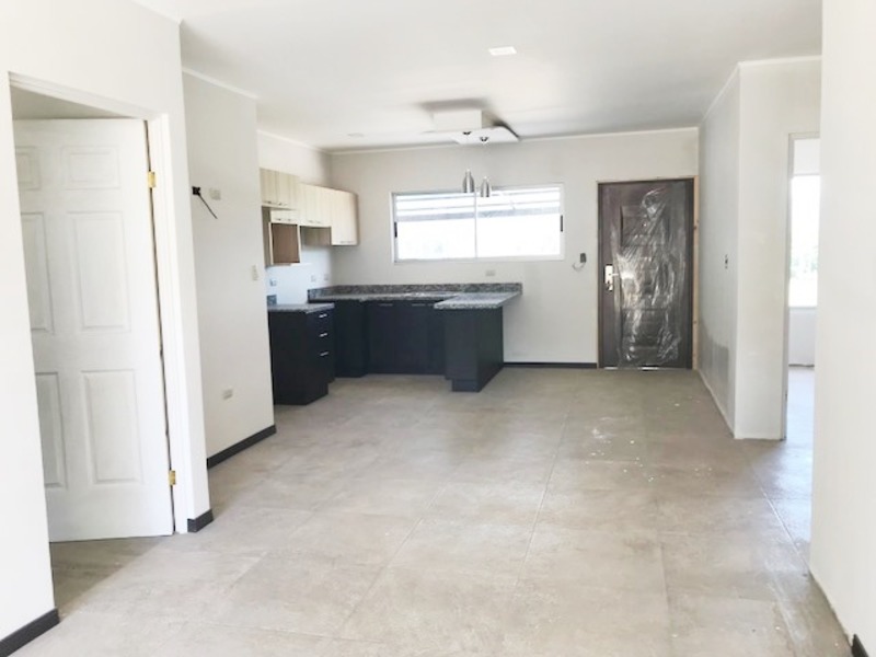 Bonita Casa Nueva de Una Planta en Condominio en Ochomogo en Cartago. The house has an integrated dining room with the kitchen area, which is open with Euromobilia furniture with granite countertops with a breakfast bar. It has three bedrooms, the main one with a walk-in closet and a full bathroom, 2 secondary bedrooms with a closet sharing a full bathroom. Laundry area in the back of the house and small patio with garden area, covered garage for 2 vehicles. Located in a condominium with a pool, a ranch for activities and a play area for children, with a green environment, since the perimeter of the condominium has many trees that is a protected area. Maintenance fee 50,000 colones per month, water is included, pets are allowed.