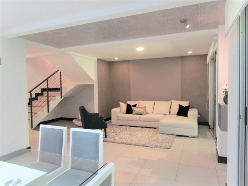 This furnished, contemporary house is in Jaboncillos - one of Escazu’s prime and most desired locations; close to all of the area’s great restaurants and stores. The 3-story home features luxurious finishes, lots of natural light and an open concept social area with access to the ample, covered terrace and yard which is perfect for entertaining and everyday living. The kitchen is completely equipped with stainless steel appliances, plenty of modern cabinetry and quartz counter tops. The laundry area and maid’s quarters are accessed by a service entrance from the garage.