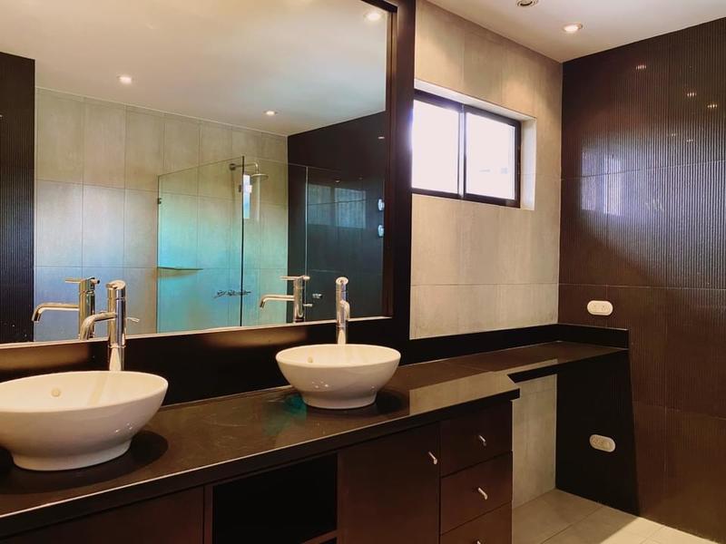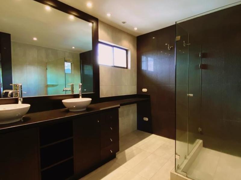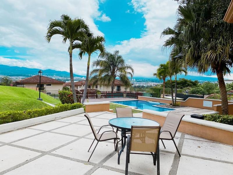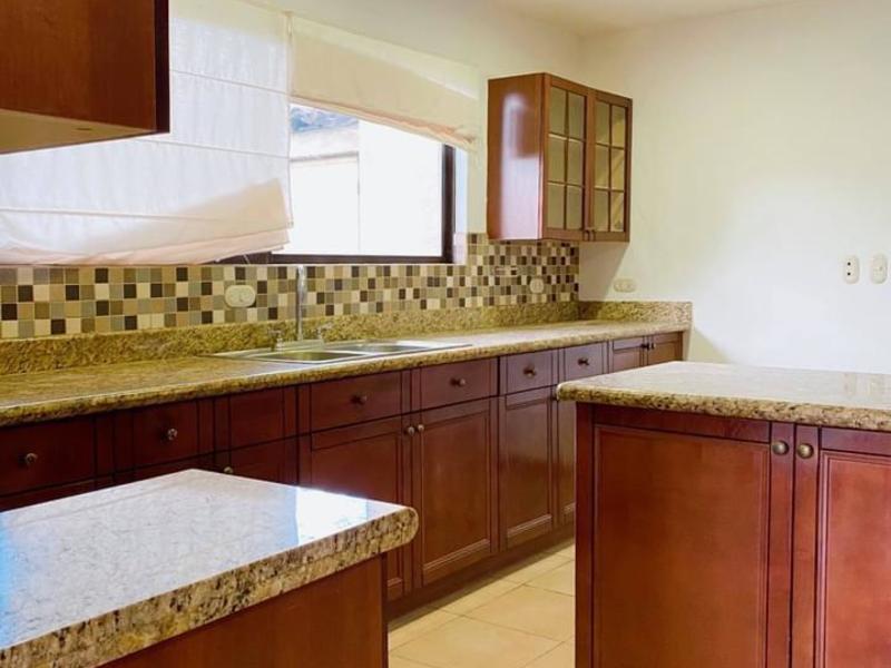 Guachipelin, Escazu 335 meters of construction approx. 405 meters of land 24 hour security Corner house, with corner garden 3 bedrooms, 2.5 bathrooms, mezzanine with bedroom and full bathroom, integrated dining room, living room and terrace 4 wineries Large and bright kitchen. Granite countertops Service room with bathroom, laundry room and garden. Renovated modern style and very bright. Renovated porcelain floors. Electric fence Covered parking for two cars. Maintenance fee - 180,000 colones approx. Tennis court, ranch with BBQ, two pools, play for children