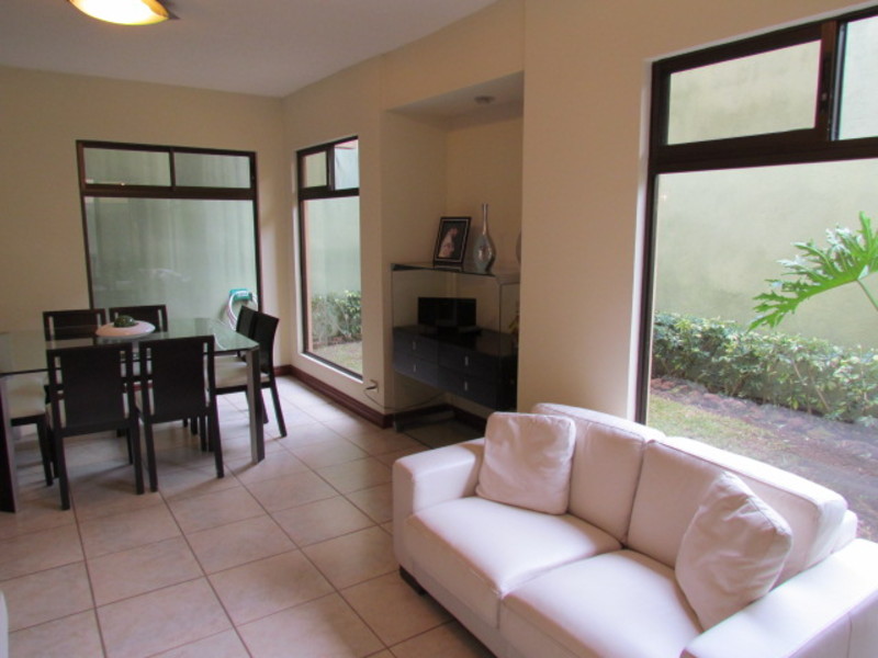 Really nice townhouse in a beautiful condominium of only 7 homes in Guachipelin. The house has 180 m2 of construction on a 190 m2 lot, 3 bedrooms, 2.5 bathrooms, private backyard and parking for 2 cars. In its 1st. Level there are the the living room and dinning room with access to the covered terrace and backyard; an open kitchen with breakfast area, half guest bathroom; maid’s bedroom and bathroom, storage, laundry area with access to the patio, 2 car garage and private backyard. In its 2nd. Level there is the master bedroom with a large closet, master bathroom with first quality fittings, and built-in cabinet; a studio areas; 2 secondary bedrooms with private closets and a bathroom shared by these last two. The condo offers a play ground for children, lots of landscaping, and 24-hour security. It is located in an area of high value appreciation and very close to shopping malls, business centers, schools, and only 5 minutes from CIMA Hospital and Multiplaza Mall.